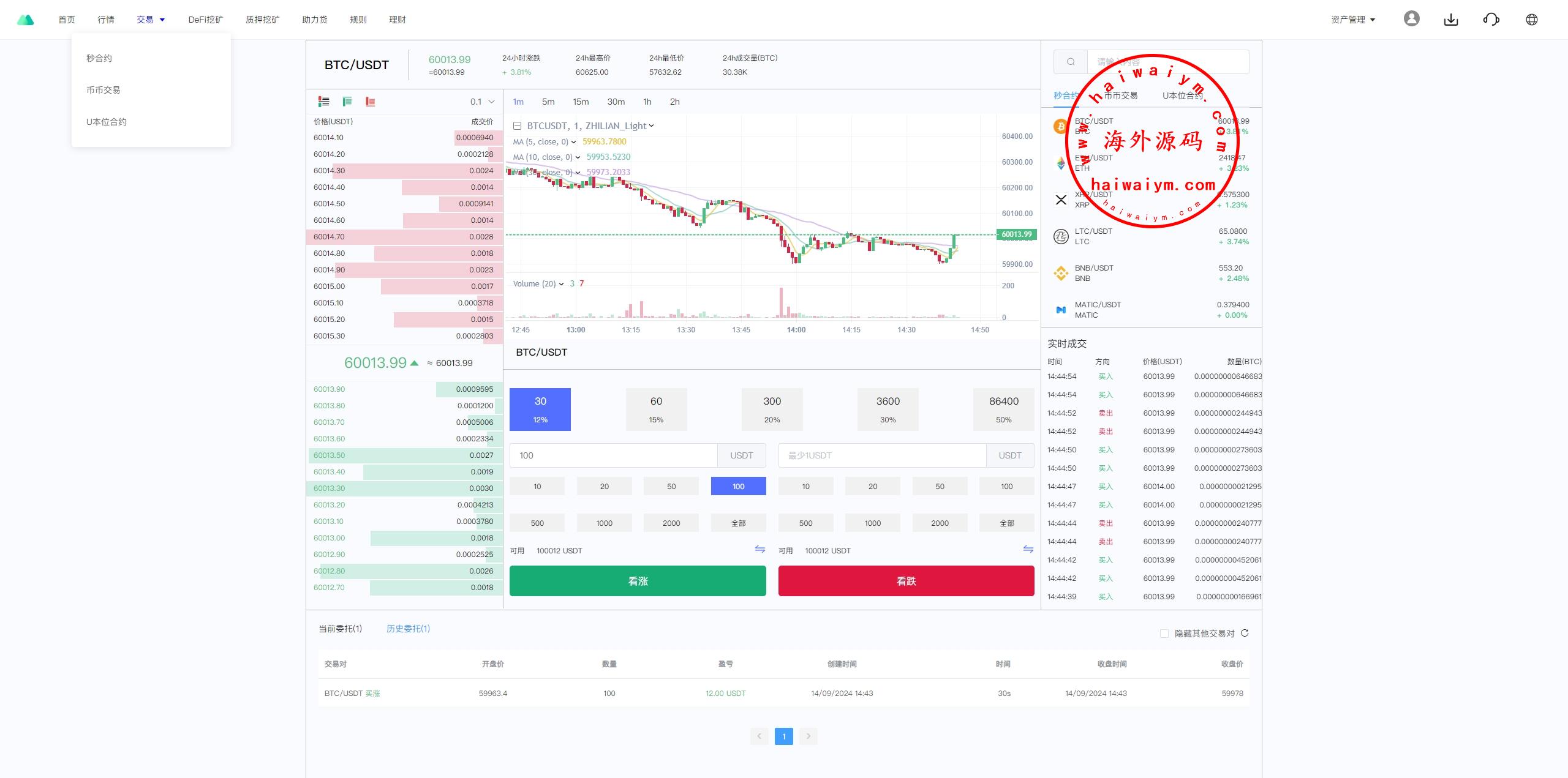 多语言JAVA交易所系统/DAPP交易所/秒合约/U本位/质押借贷