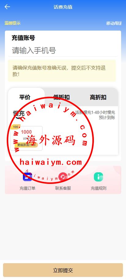 新版话费电费慢充系统/话费充值跑分自动手动/可三方接口