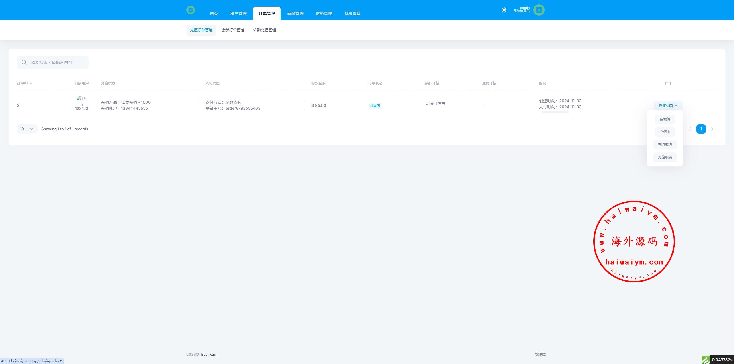 话费电费充值跑分系统可手动或者三方接口自动充值