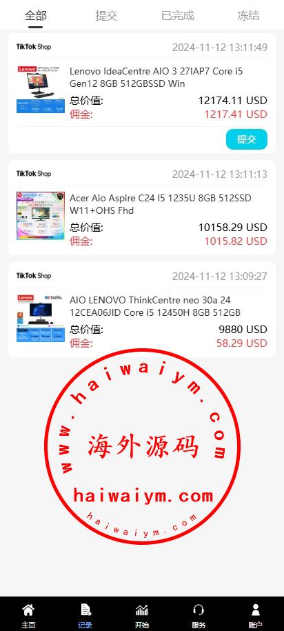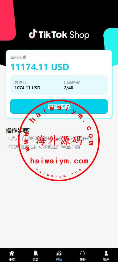 新版多语言TikTok抢单刷单系统/40单任务快杀盘/前端VUE