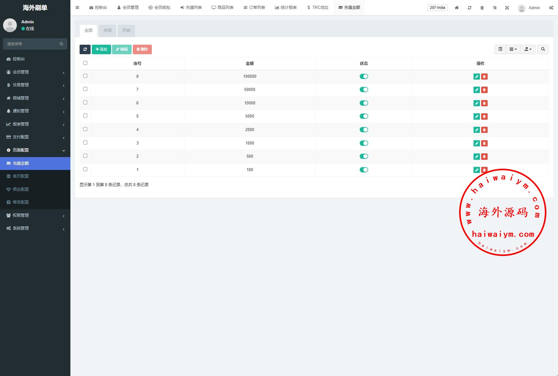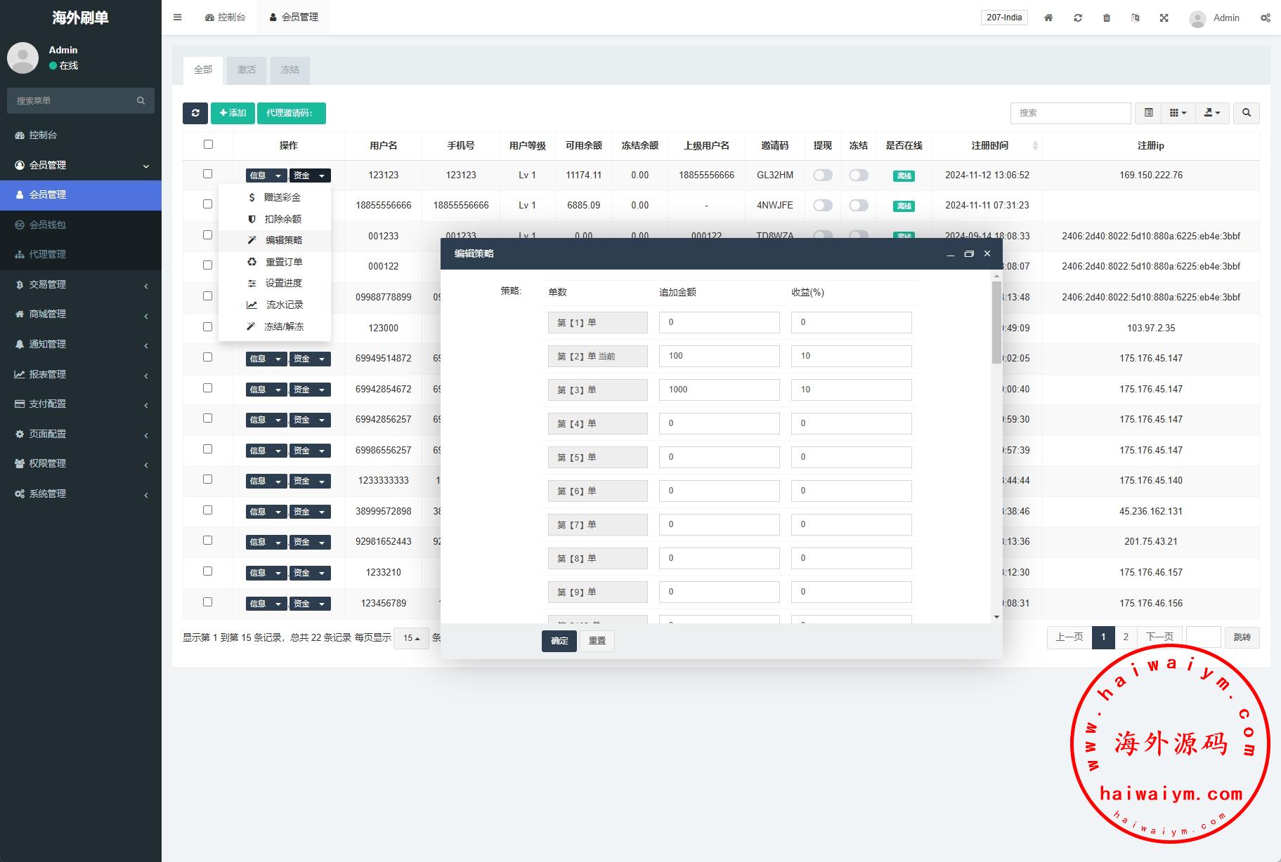 自由设置每一个订单的金额及佣金比例,亦可直接设置1-40单;若设置的订单金额超过用户余额,则显示:请充值XXX元,以获得佣金XXX元。