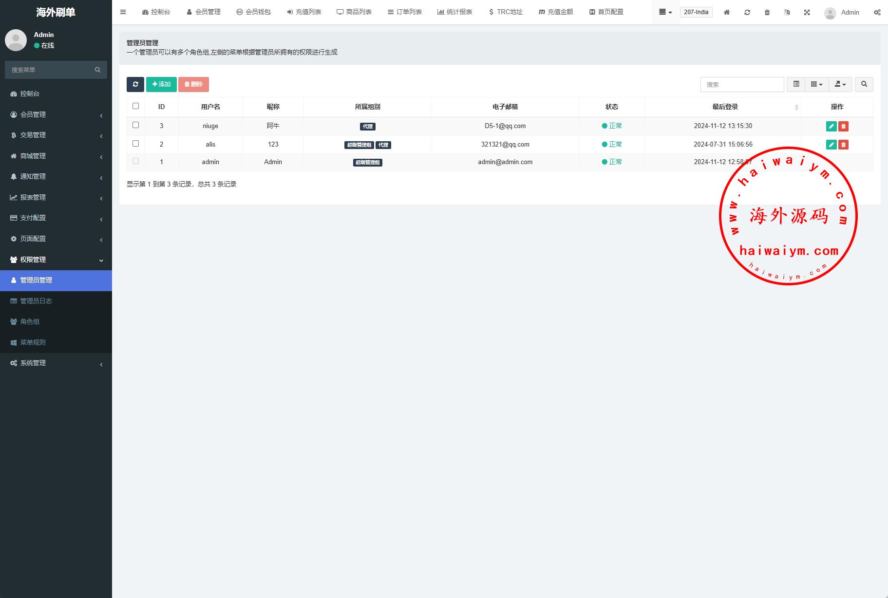 支持权限代理后台