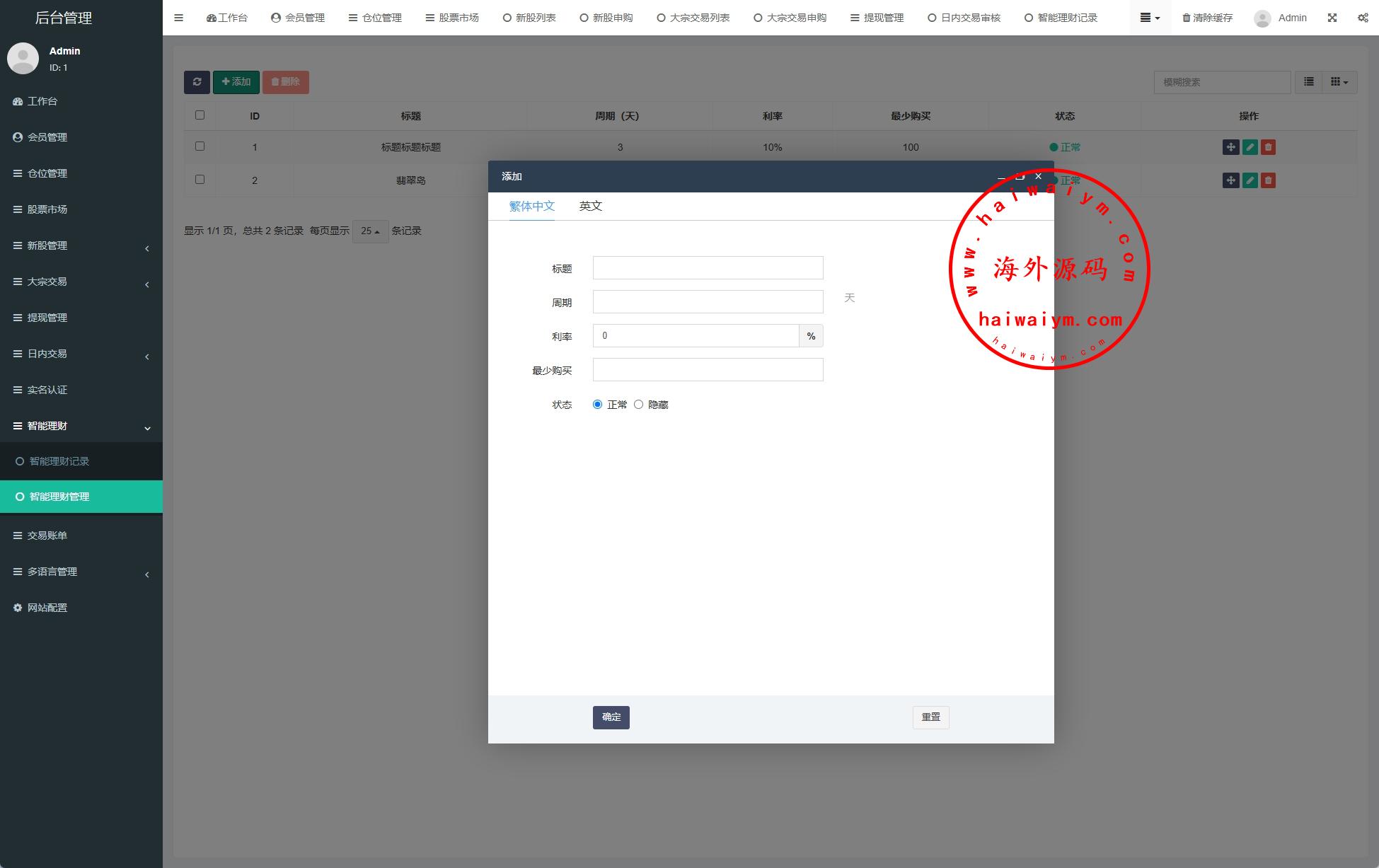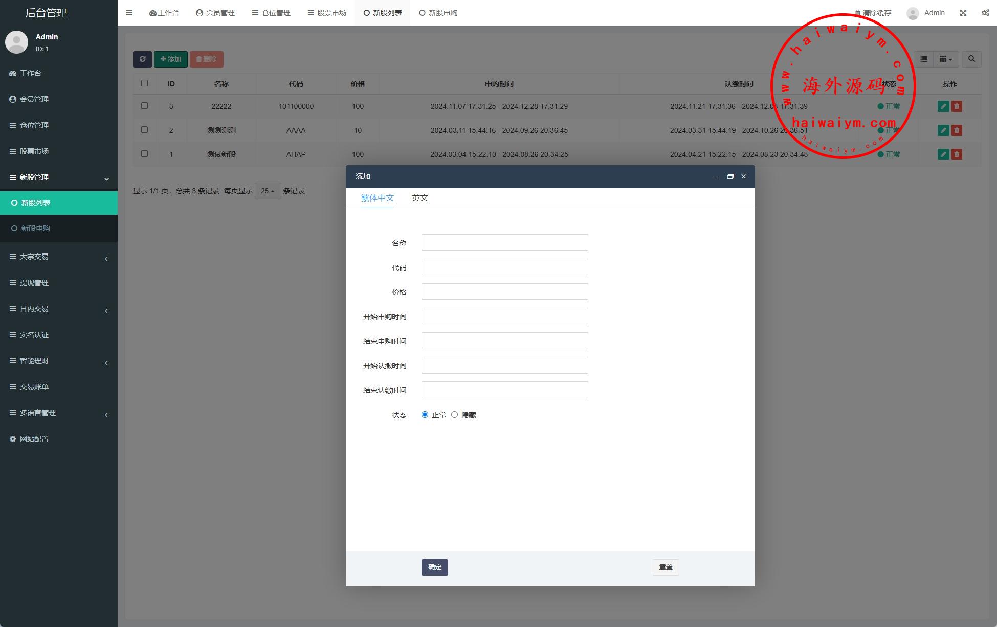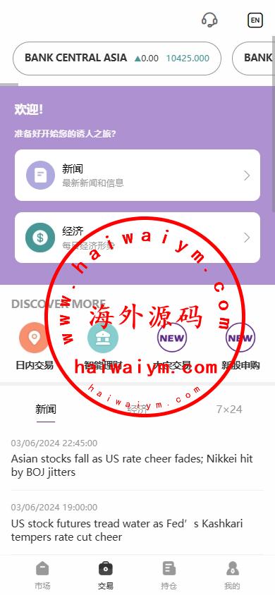 海外股票系统/多语言股票/大宗交易/新股认购/产品理财