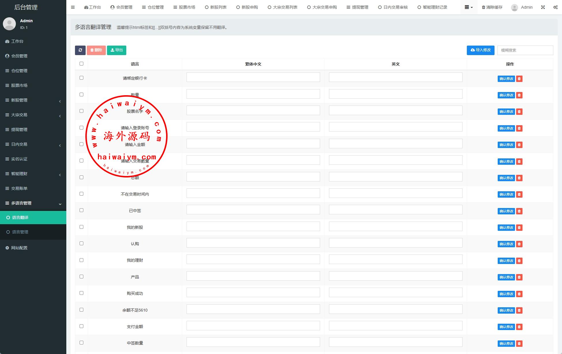 前端语言后台添加翻译,支持大宗交易新股认购产品理财等功能