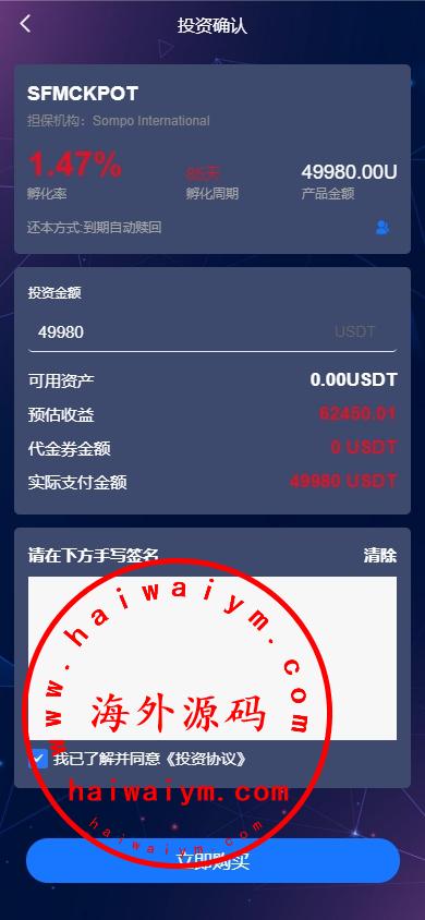 系统支持:投资电子签名,推广10级分销,签到,IM社区,积分兑换功能
