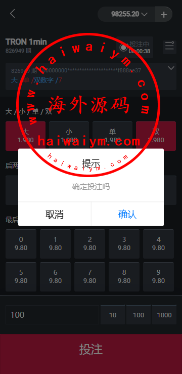 前端uinapp区块链trx投注游戏/区块链下注游戏/手动自动开奖