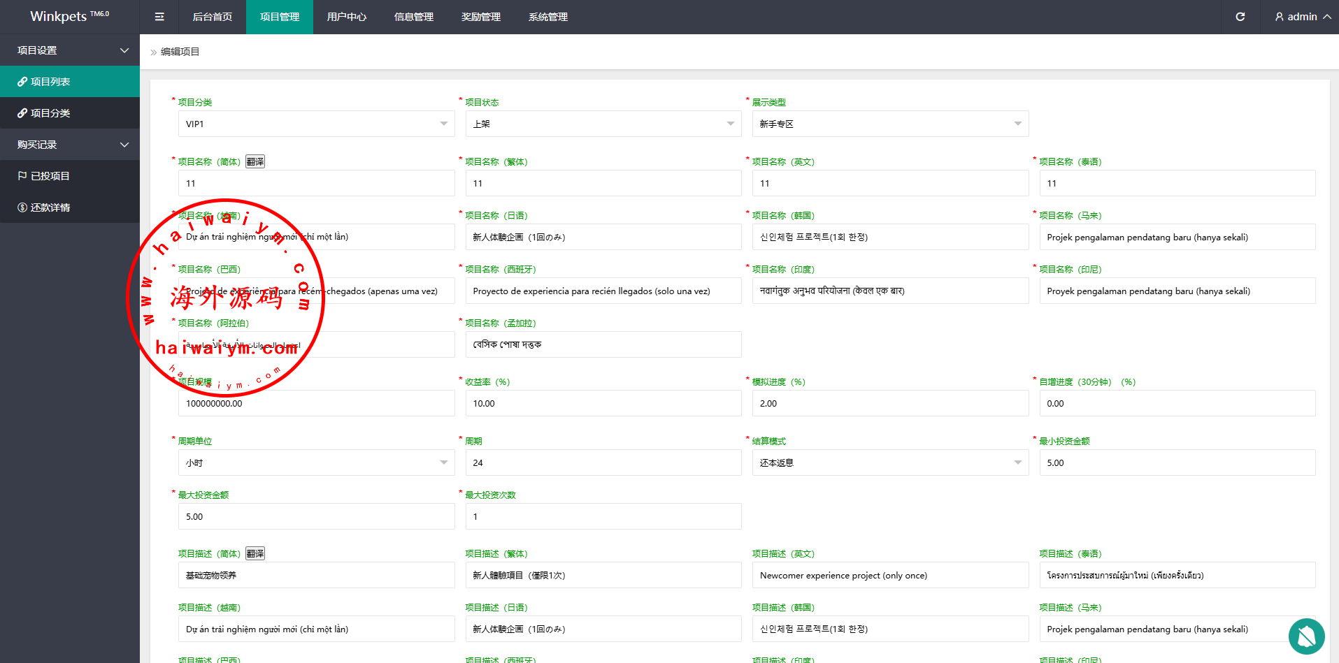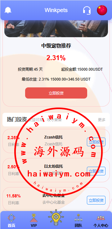 海外宠物投资理财系统/多语言投资源码/前端VUE