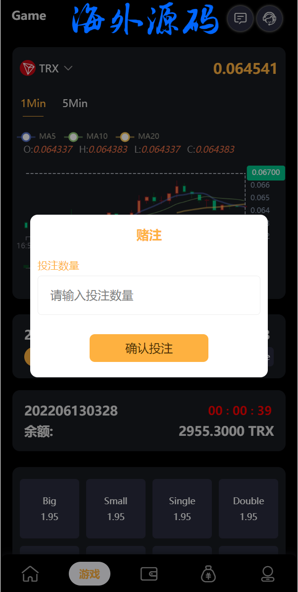 支持trx投注竞猜,开奖界面K线正常,开奖方式支持手动、自动开奖