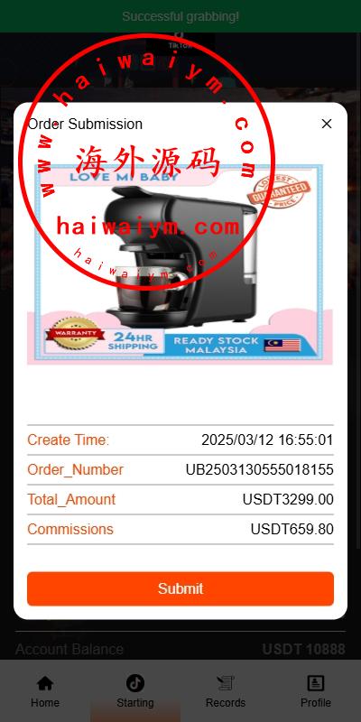 海外TIKTOK抢单刷单系统/连单卡单/前端VUE