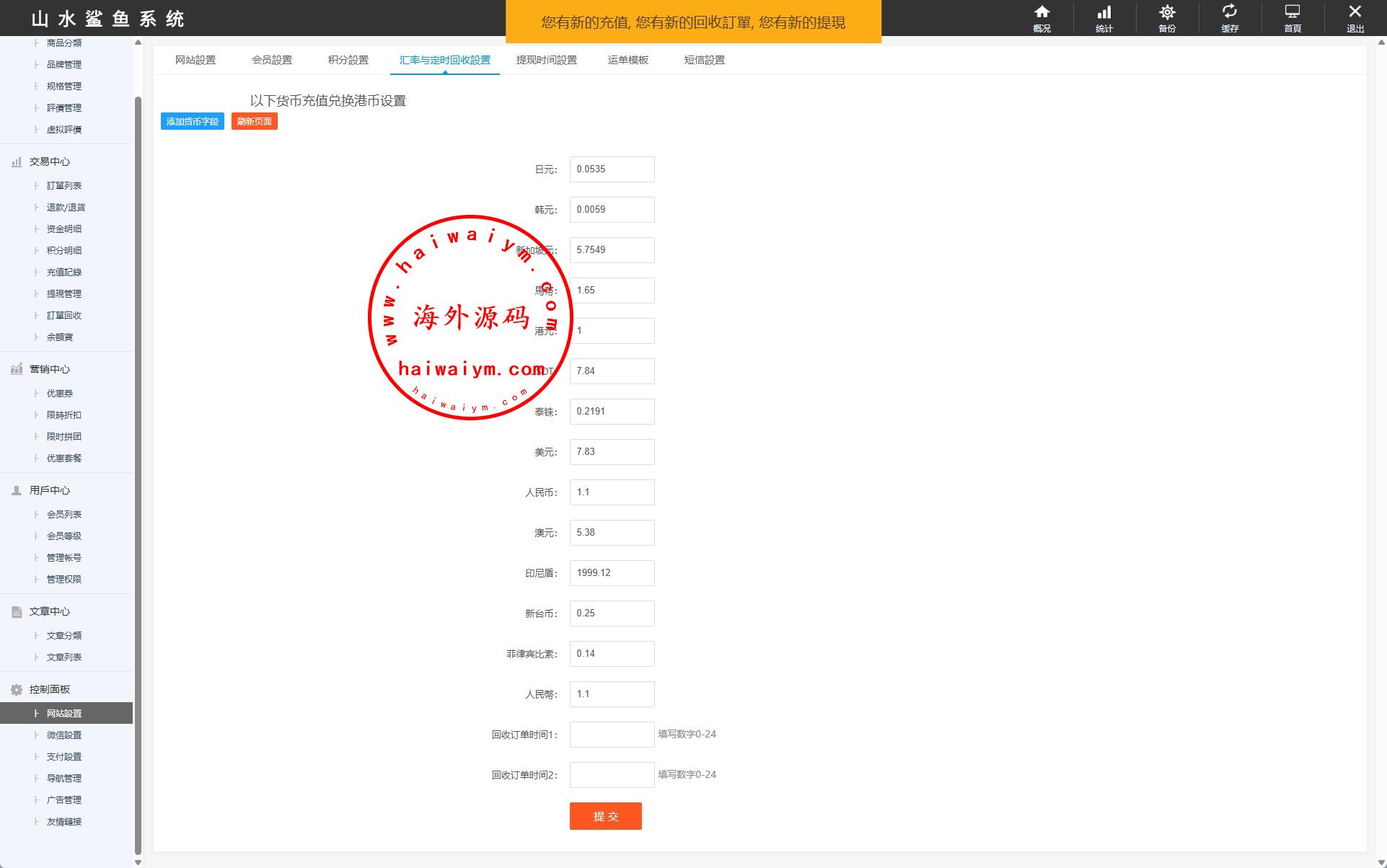 支持充值汇率选择,前端邀请码访问