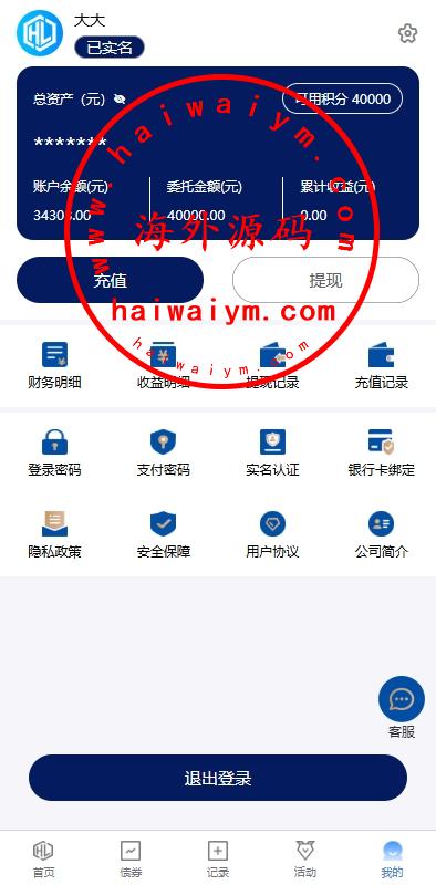 功能支持:债券投资购买、贷款、签到、收益计算器、积分商城等功能
