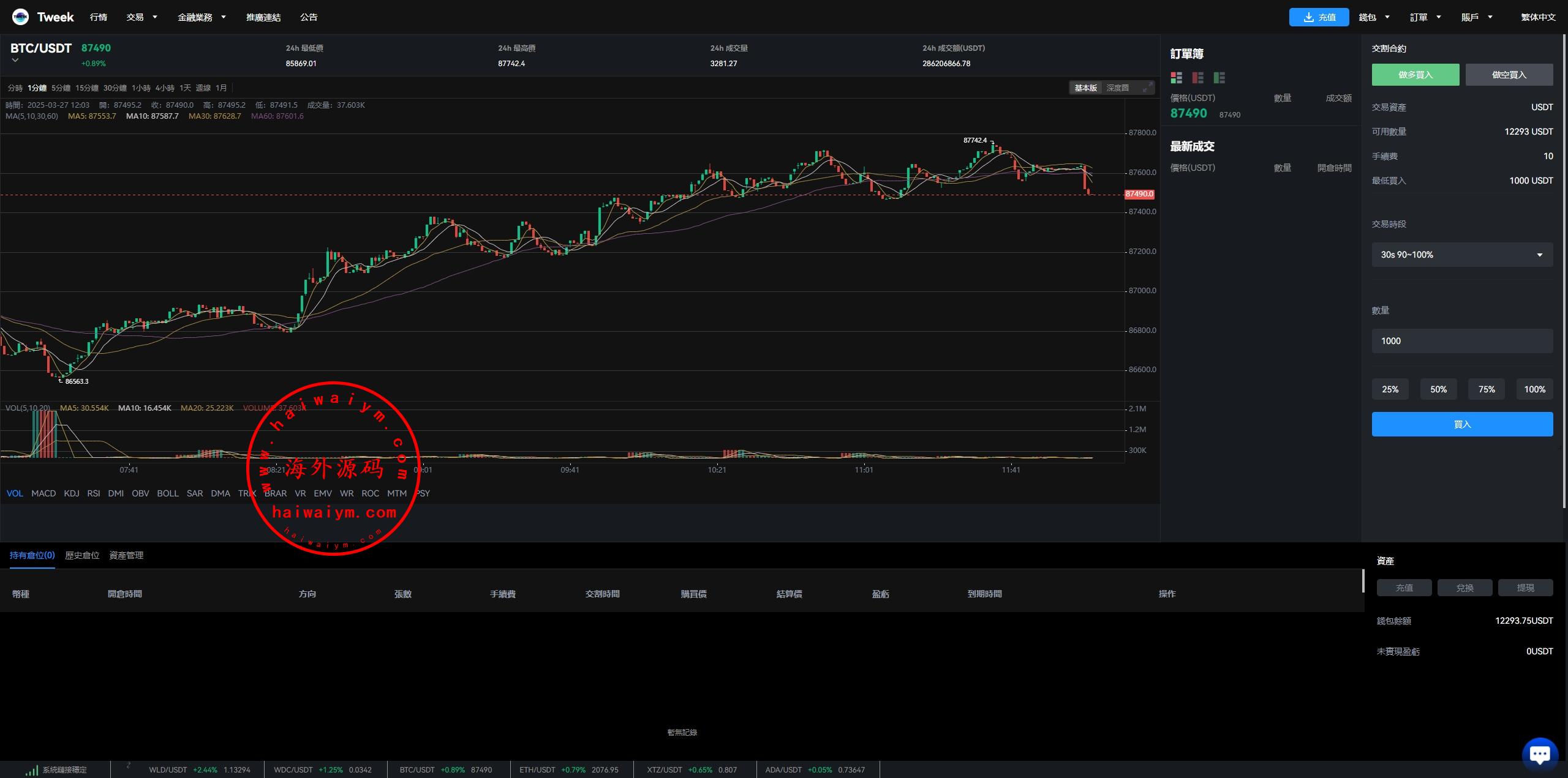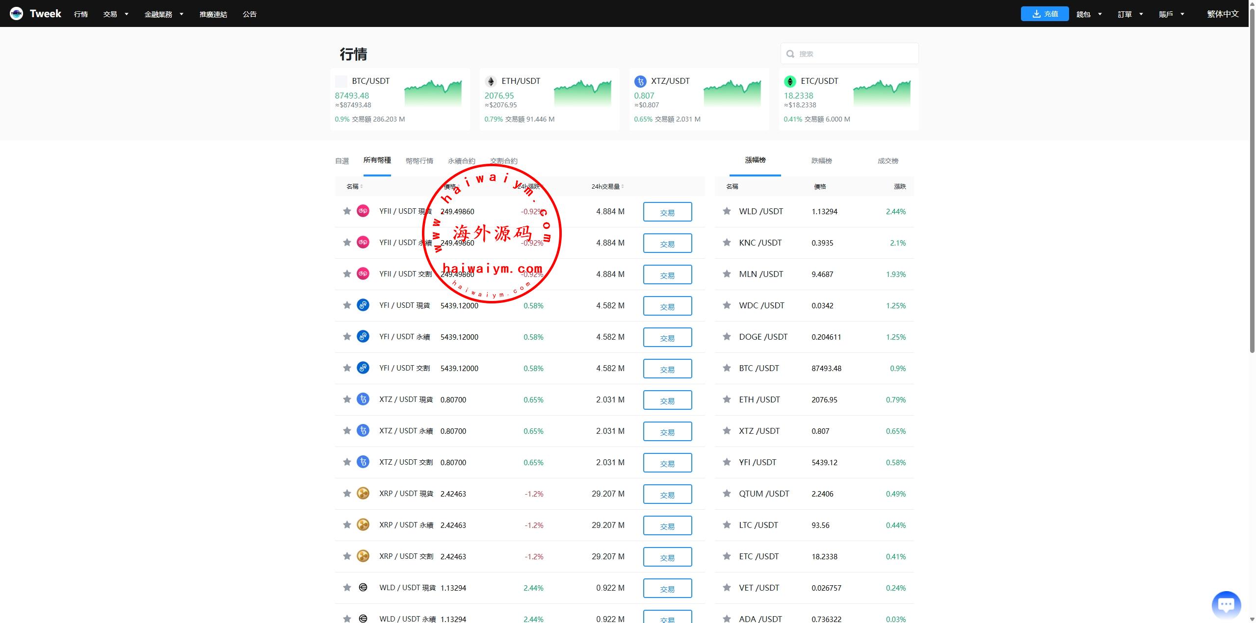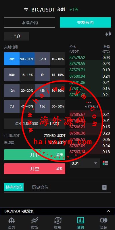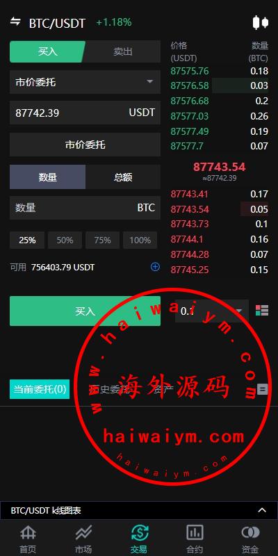 海外多语言交易所系统/永续合约交割合约/C2C/K线控制