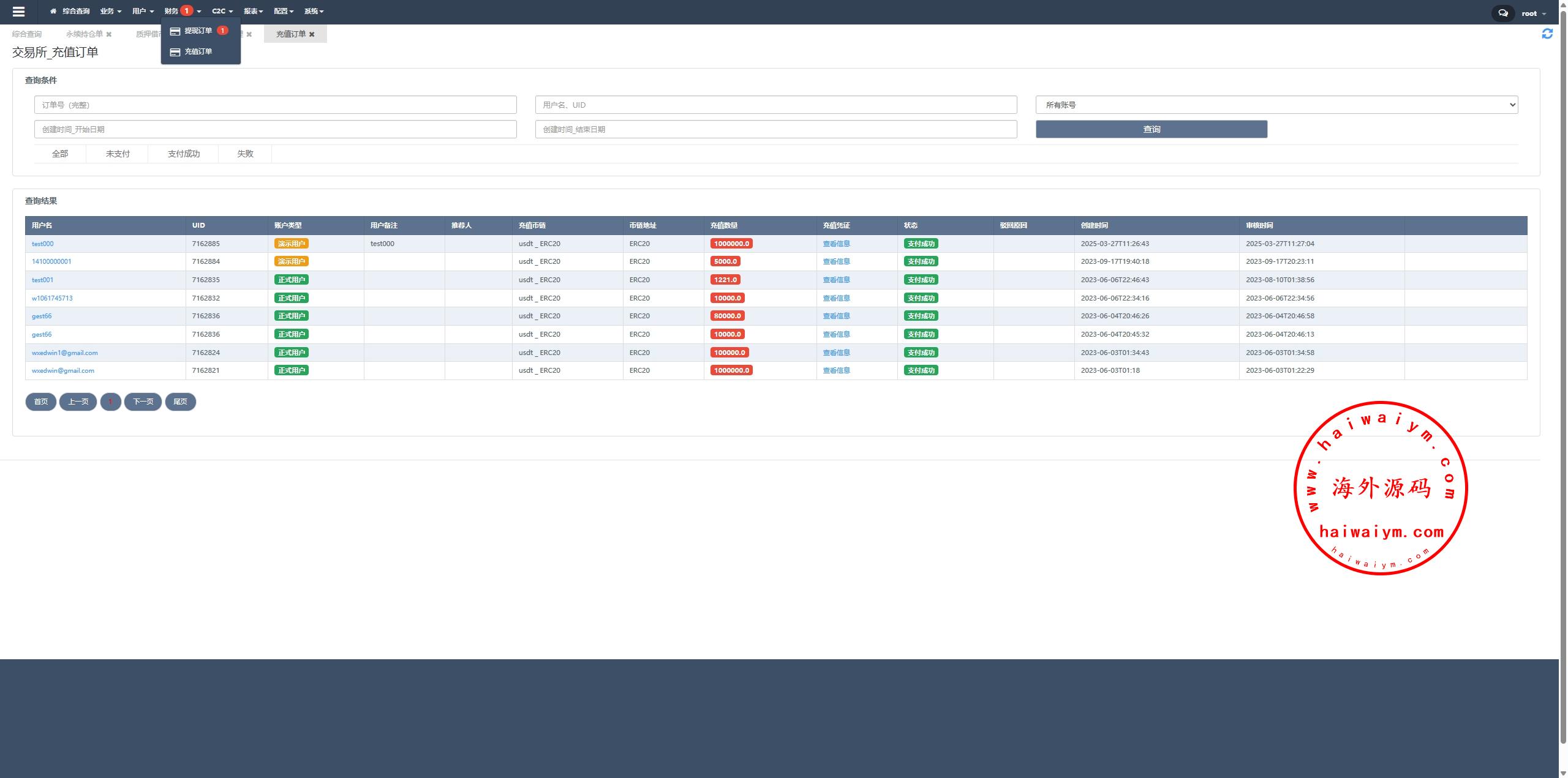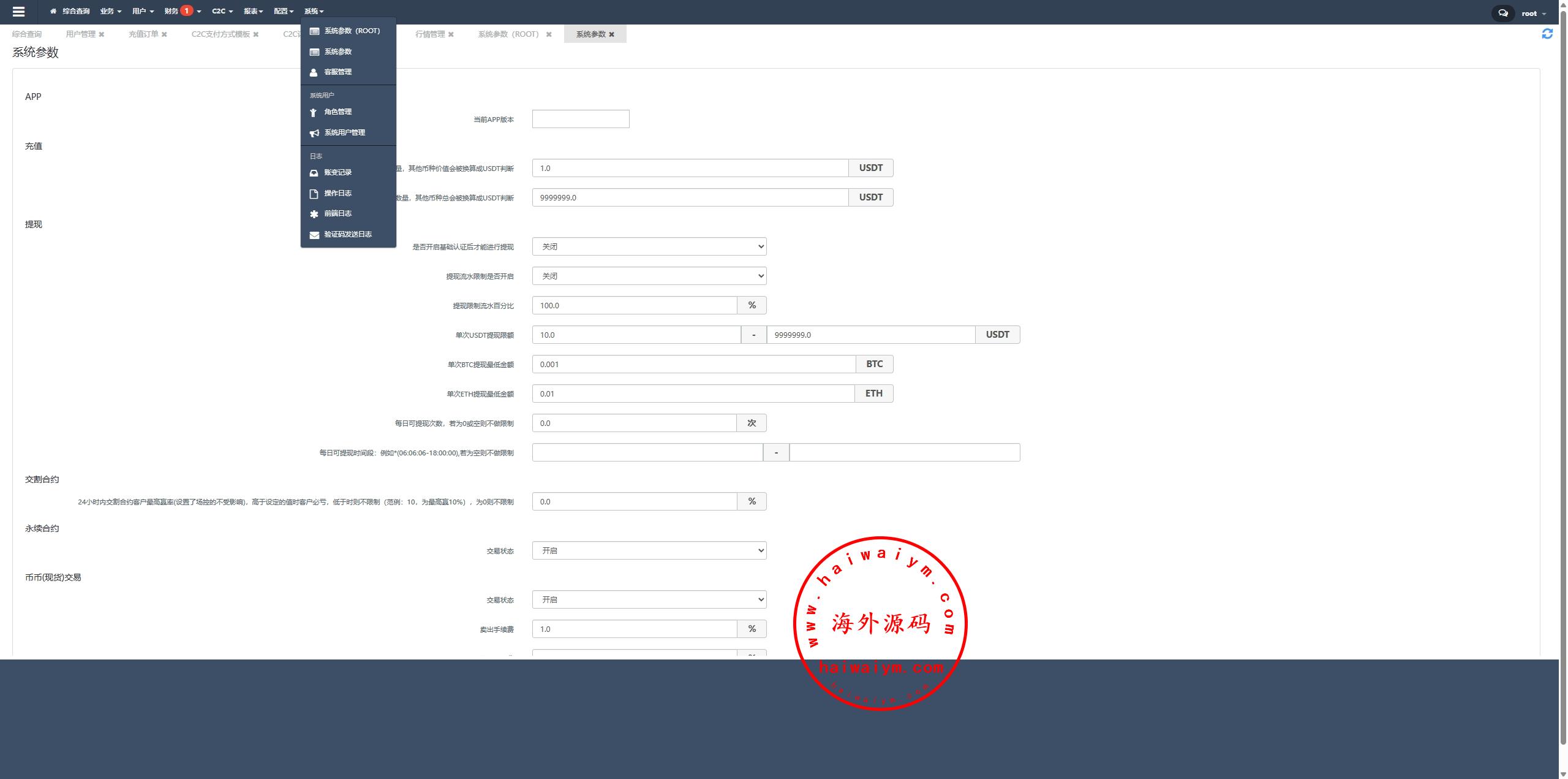 系统功能:永续合约、交割合约、现货交易、理财、矿池、质押借币、C2C等功能