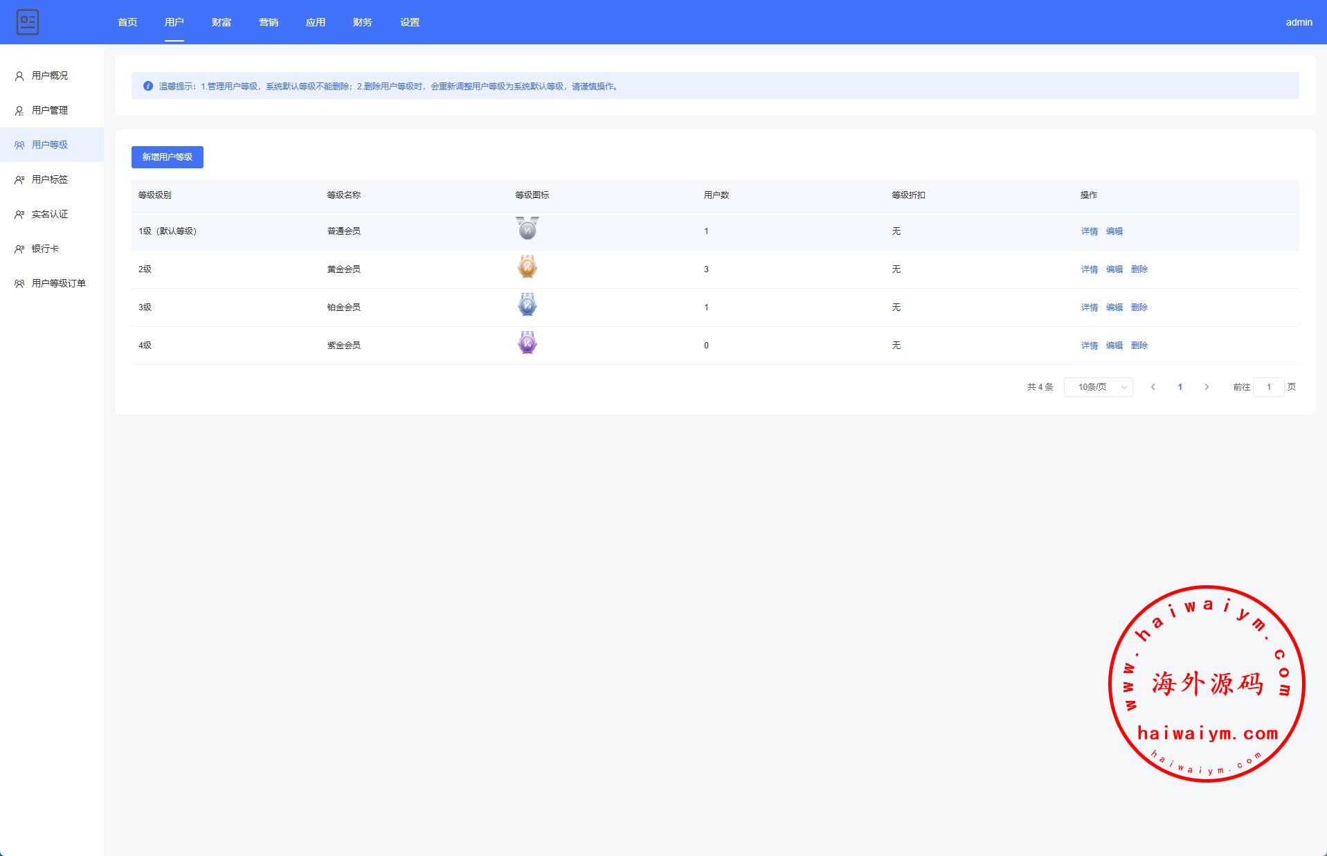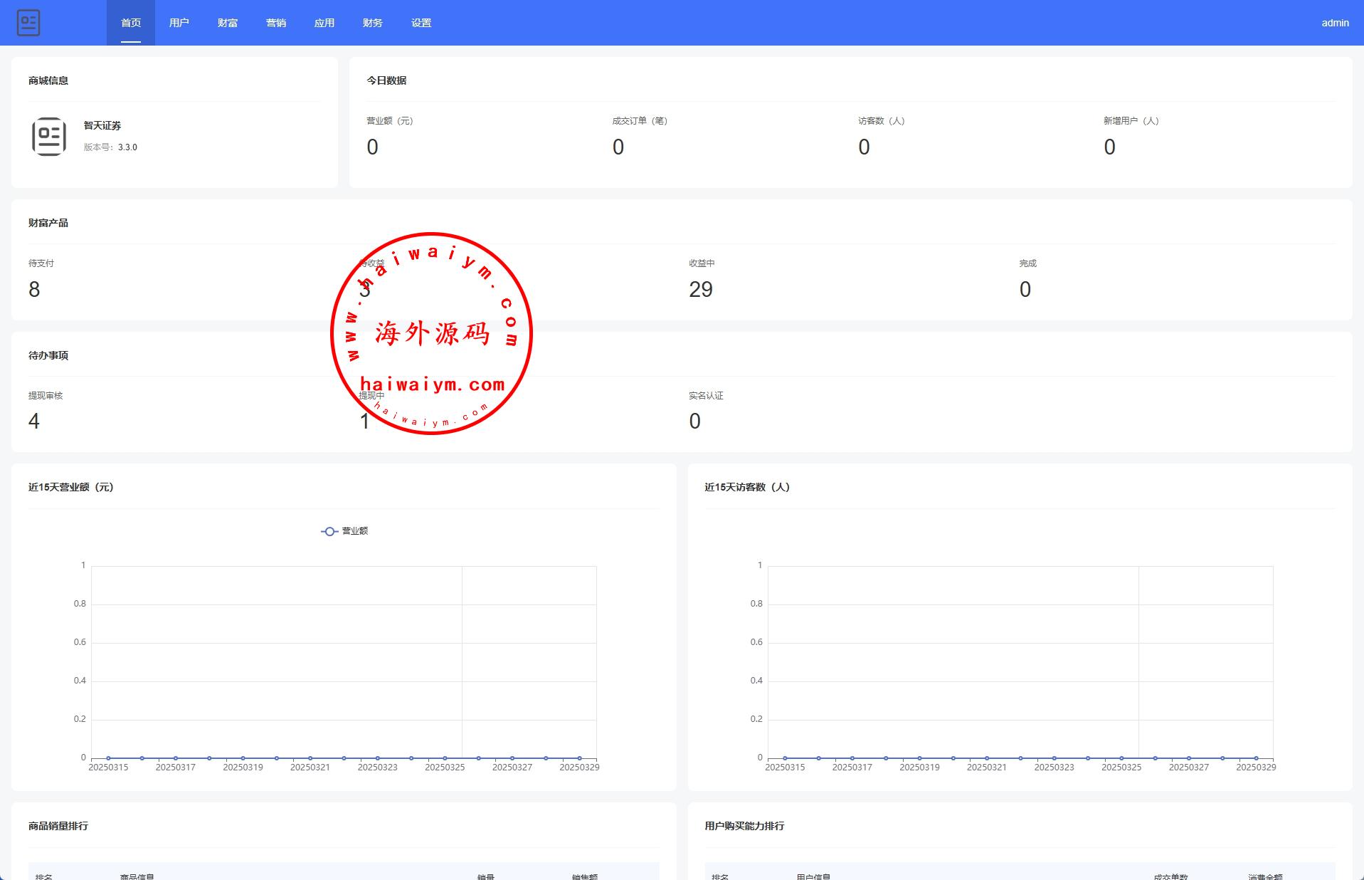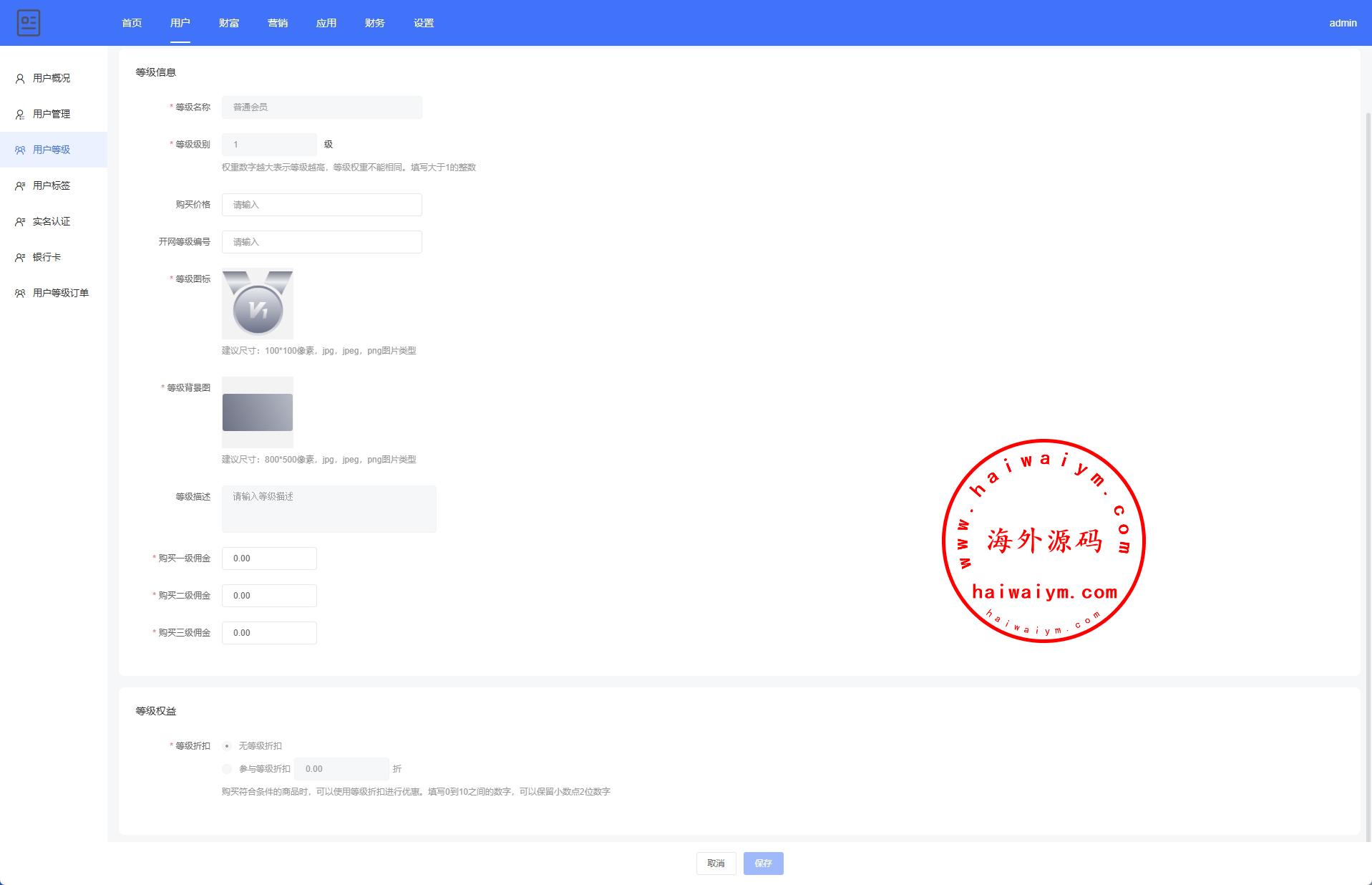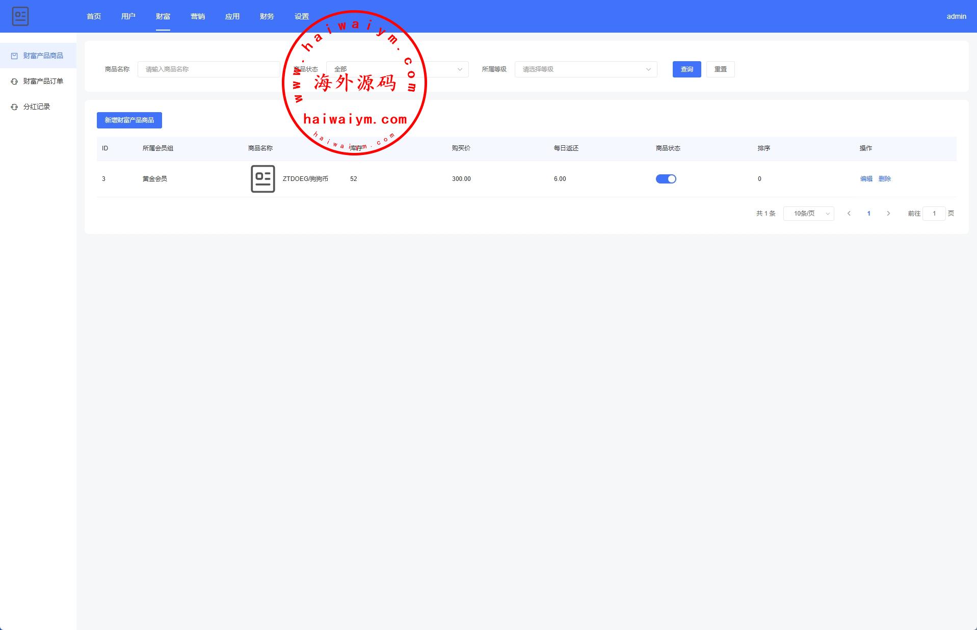 系统功能:产品投资分红、等级购买、签到、三级分销等功能