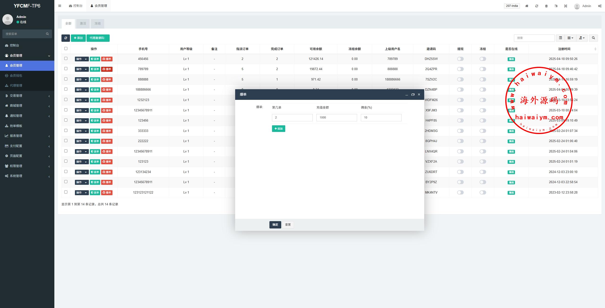 系统手动派单设置抢单数,手动设置爆单金额佣金
