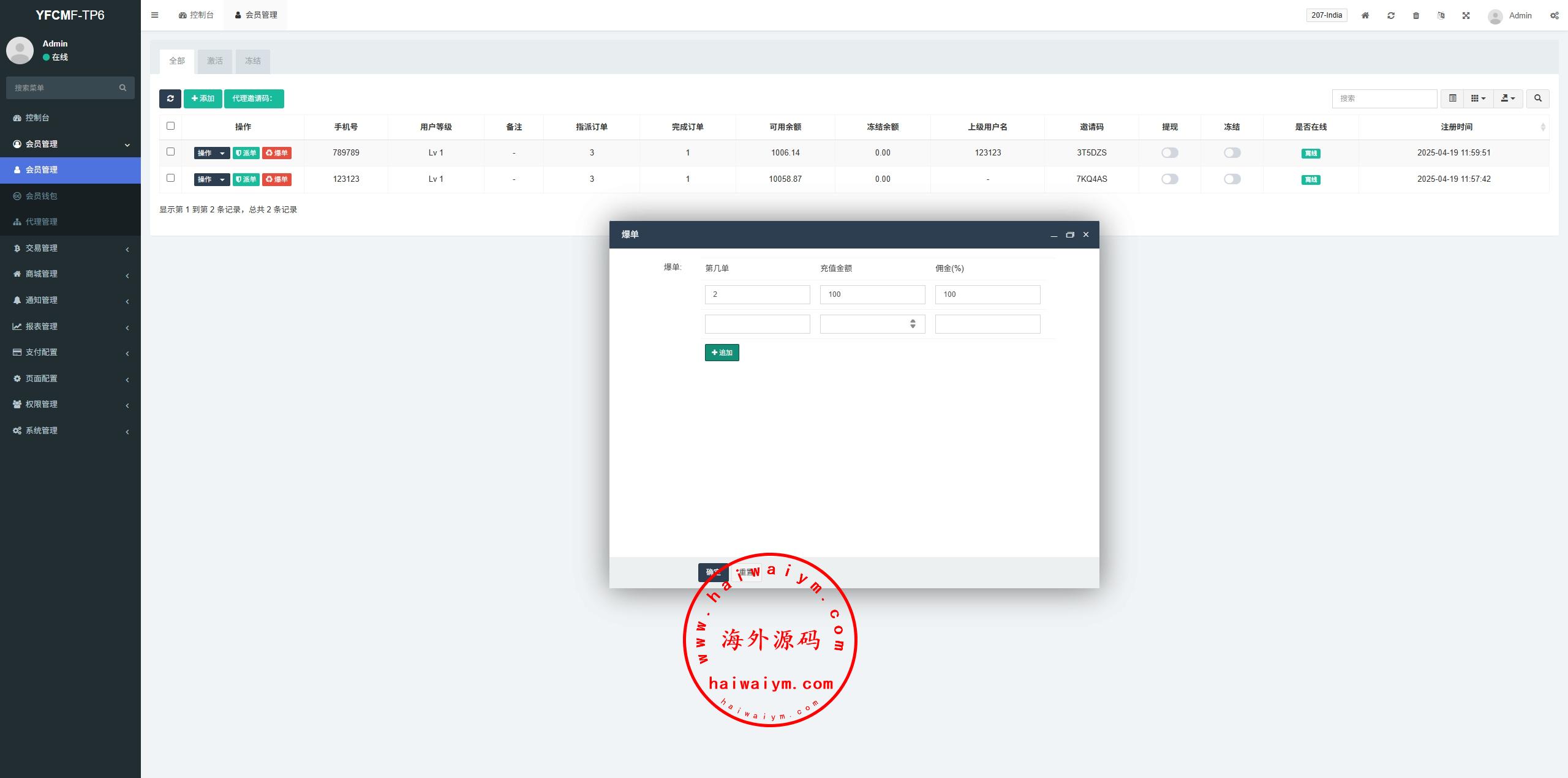 系统手动派单设置抢单数,手动设置爆单金额佣金,带签到功能