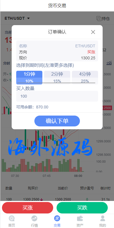 全新框架微盘系统/双语言伪交易所源码/微交易系统