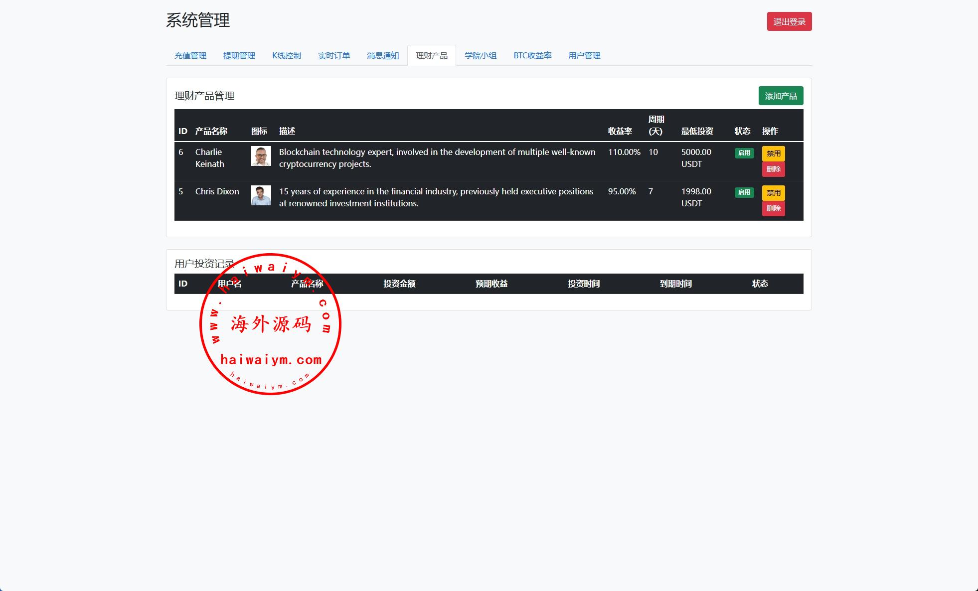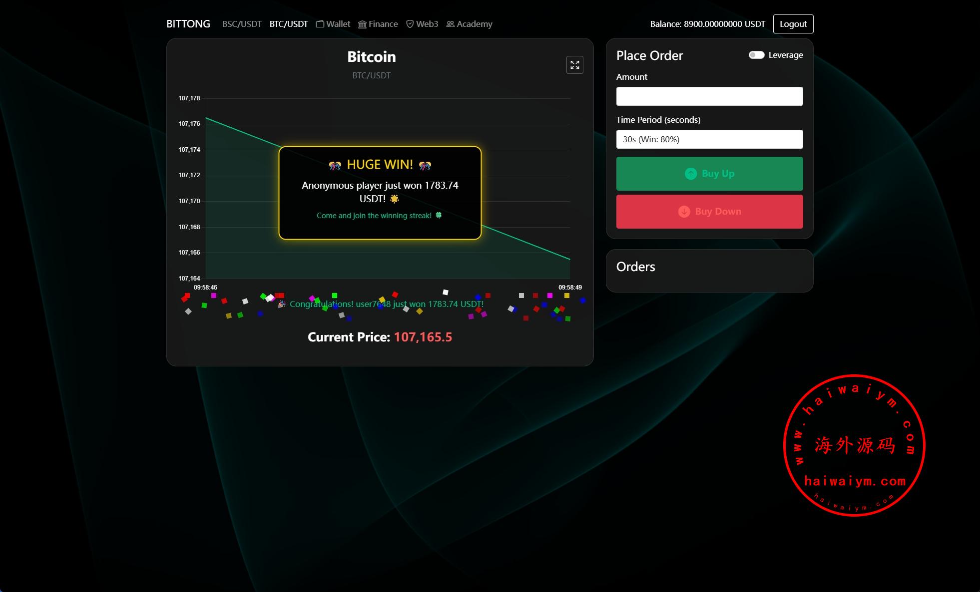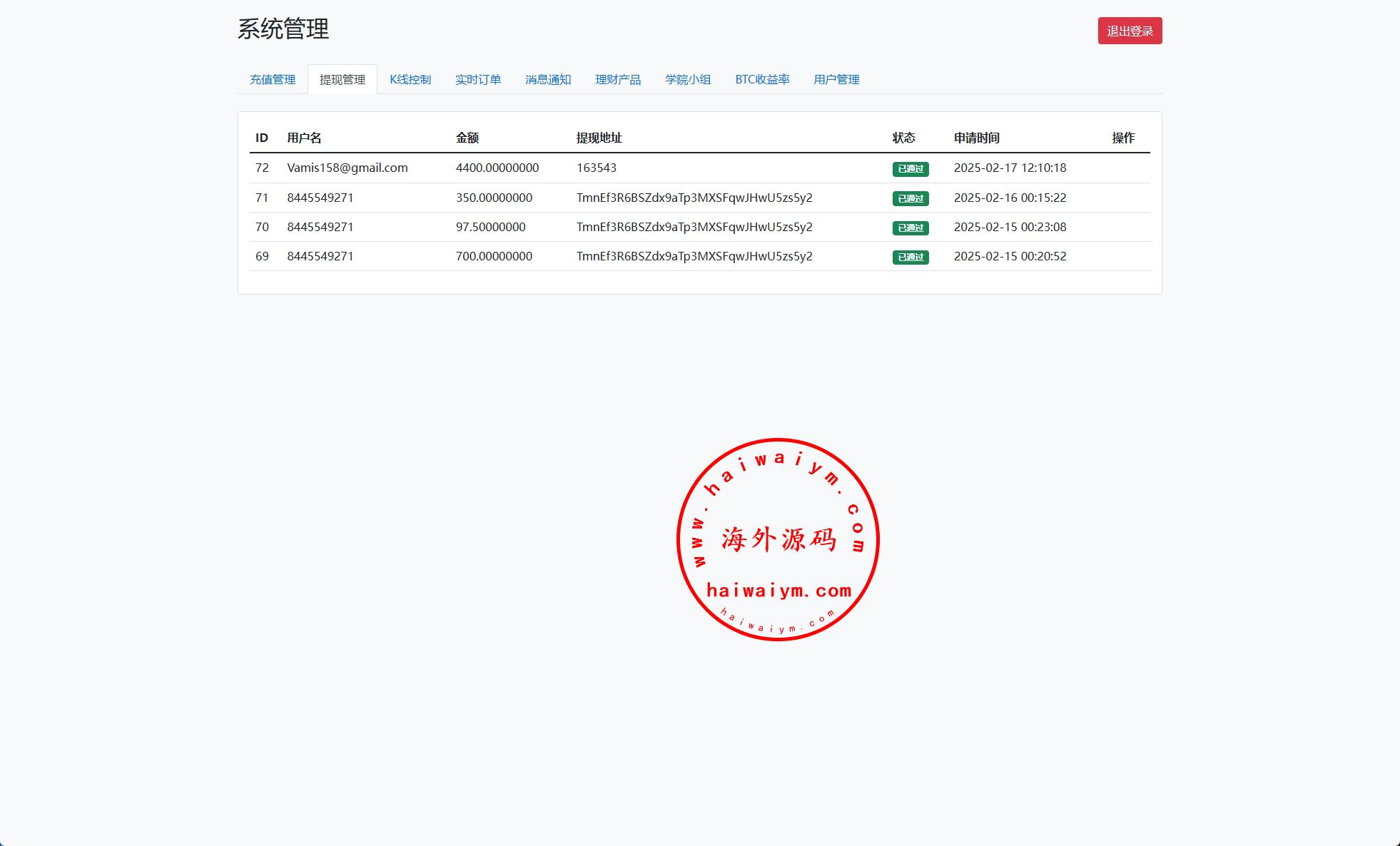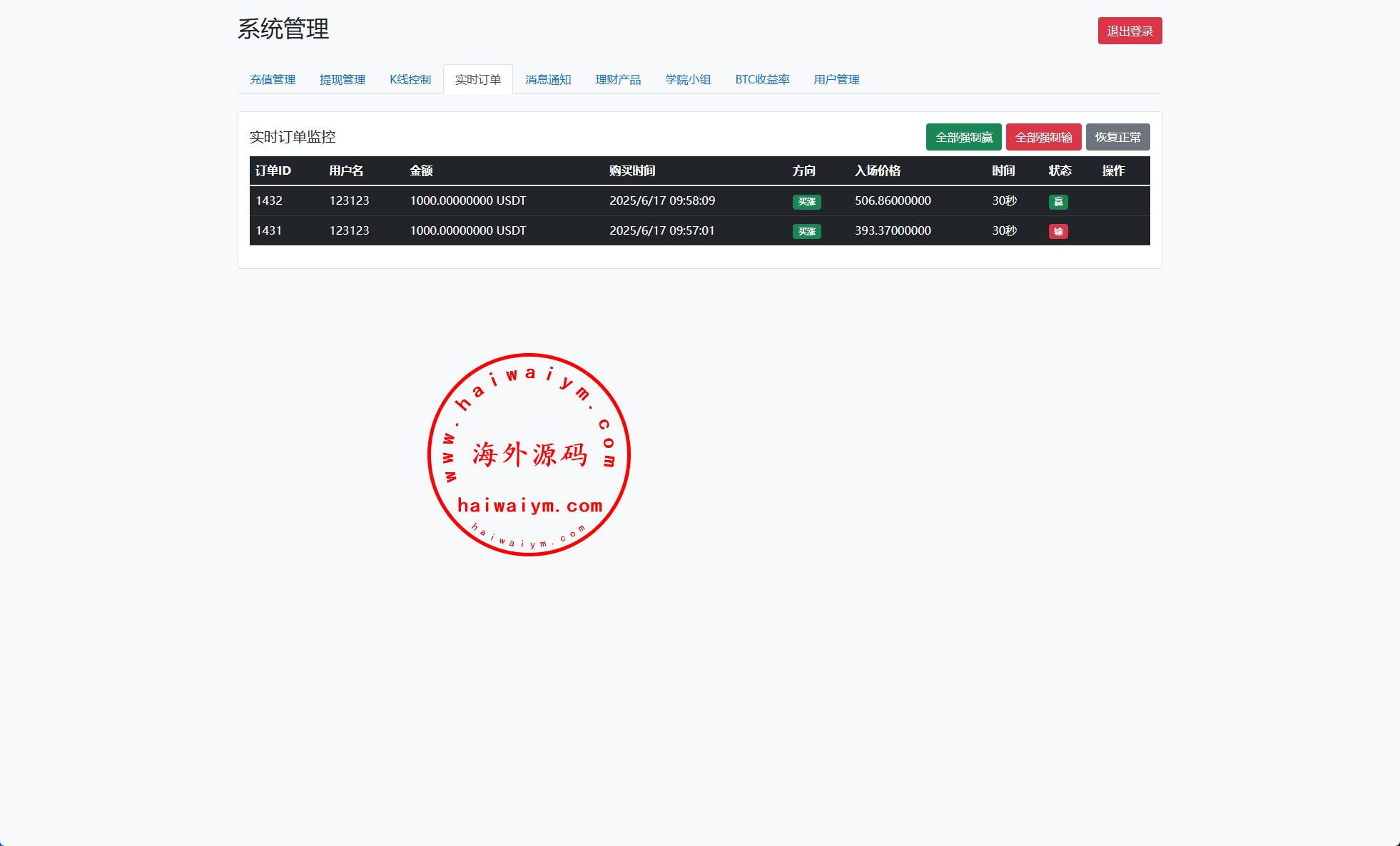 海外交易所系统/秒合约/杠杆交易/投资/K线控制