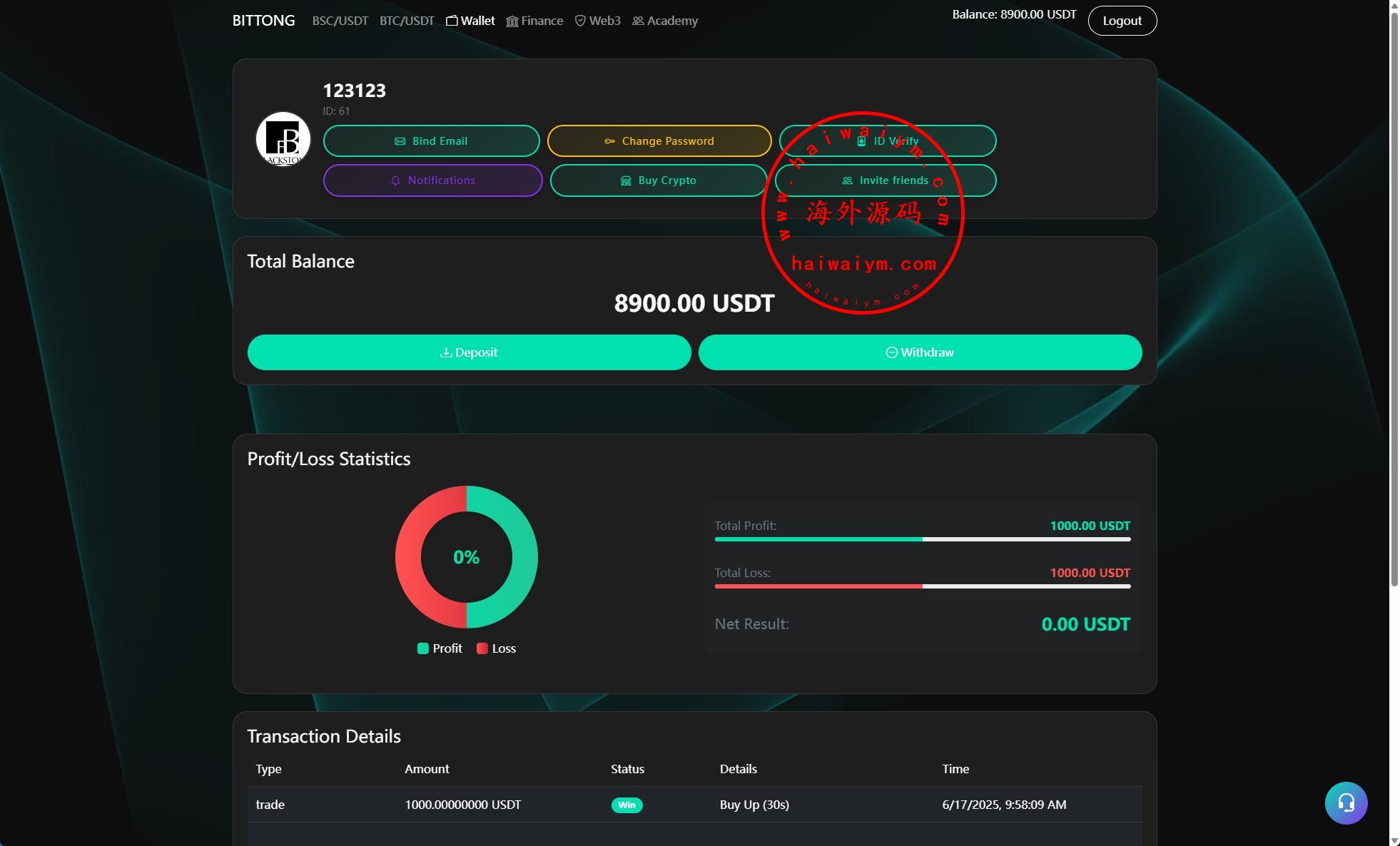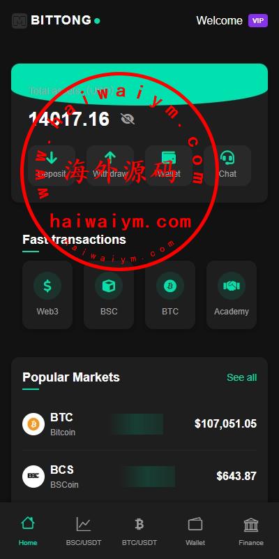 系统只有BSC跟BTC交易,支持秒合约跟杠杆交易