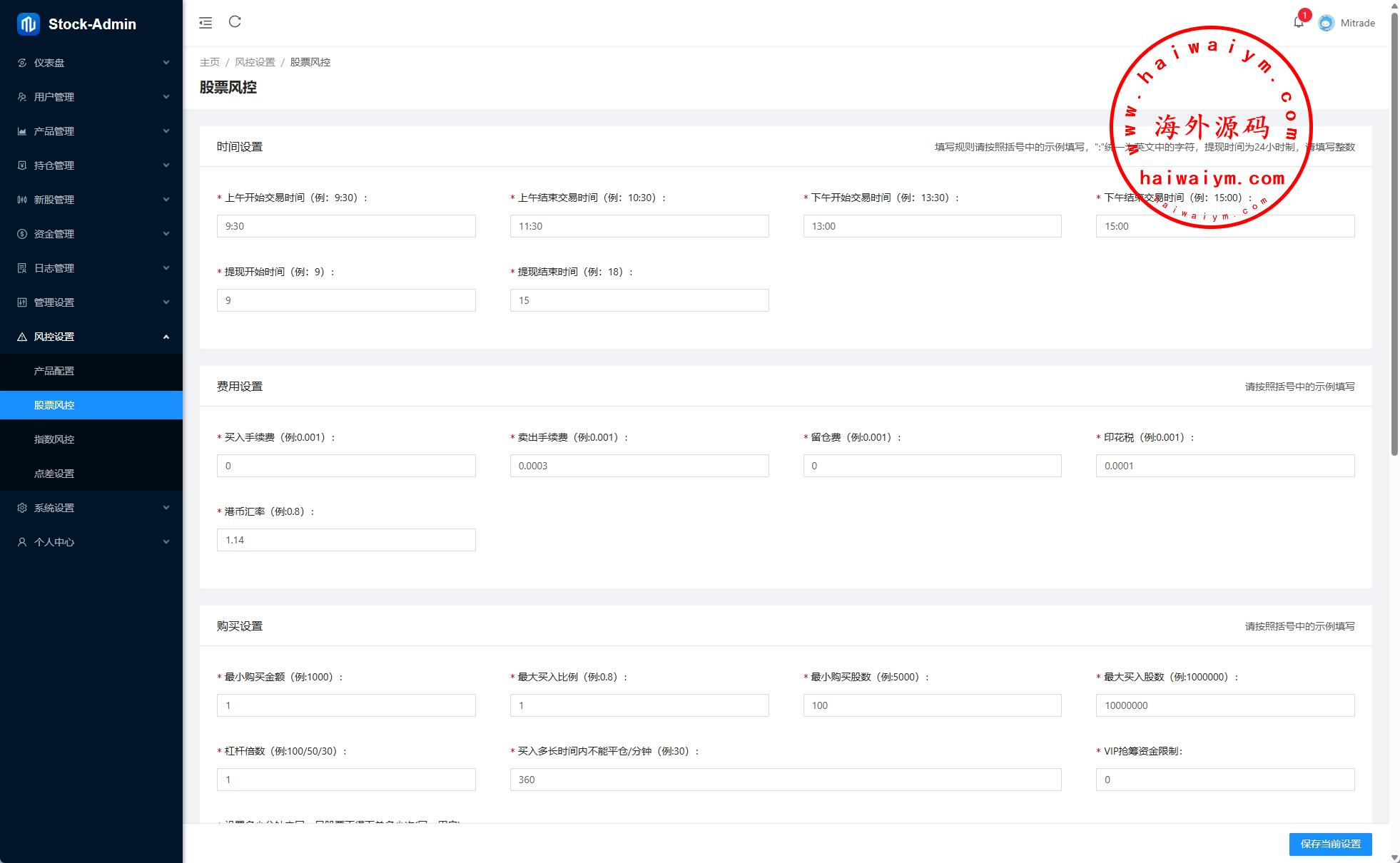 前端VUE,后台VUE,API端JAVA开发带源码 系统功能齐全,二开:涨停买入1000,后台手动通过100-900等