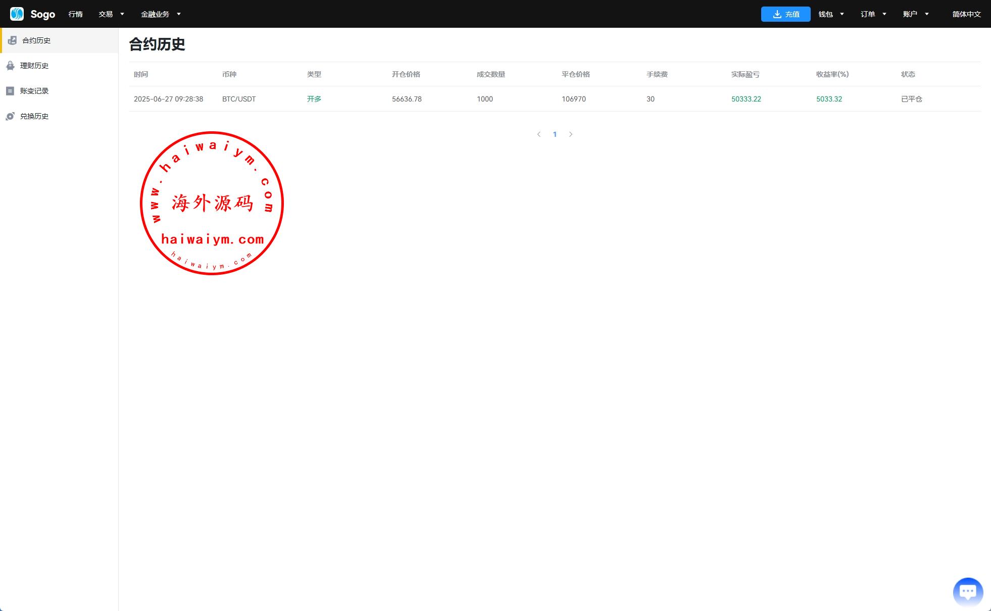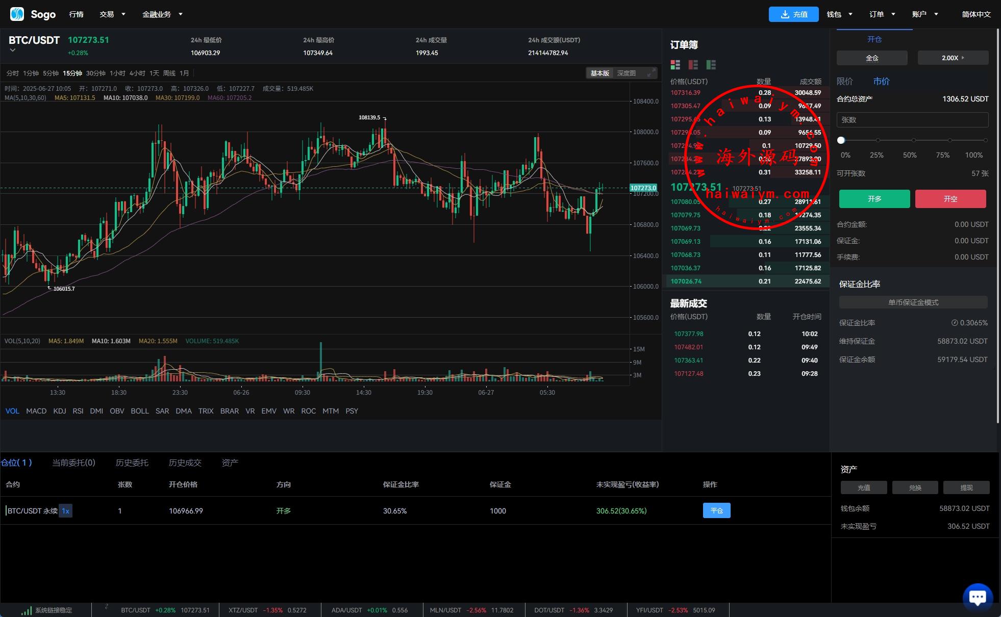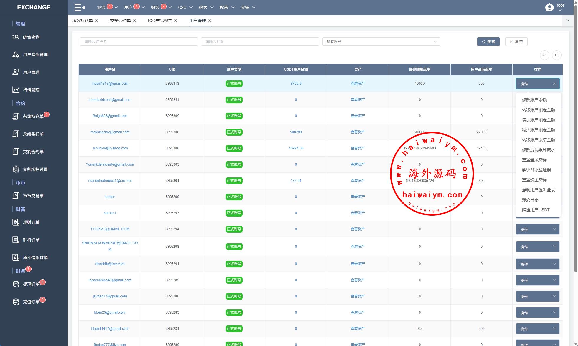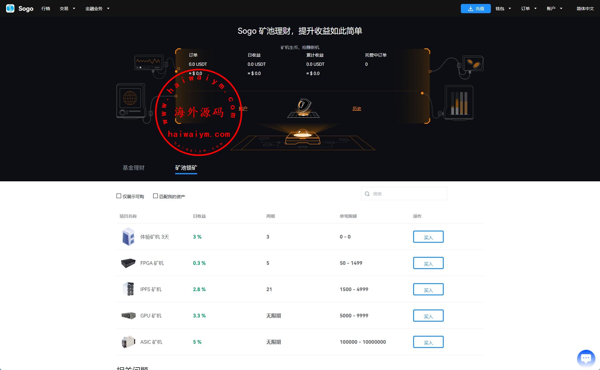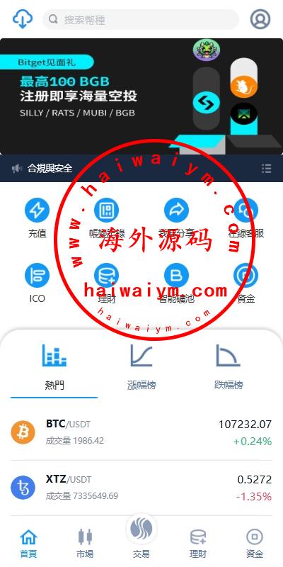 系统功能:永续合约、交割合约、现货交易、理财、矿池、质押借币等功能