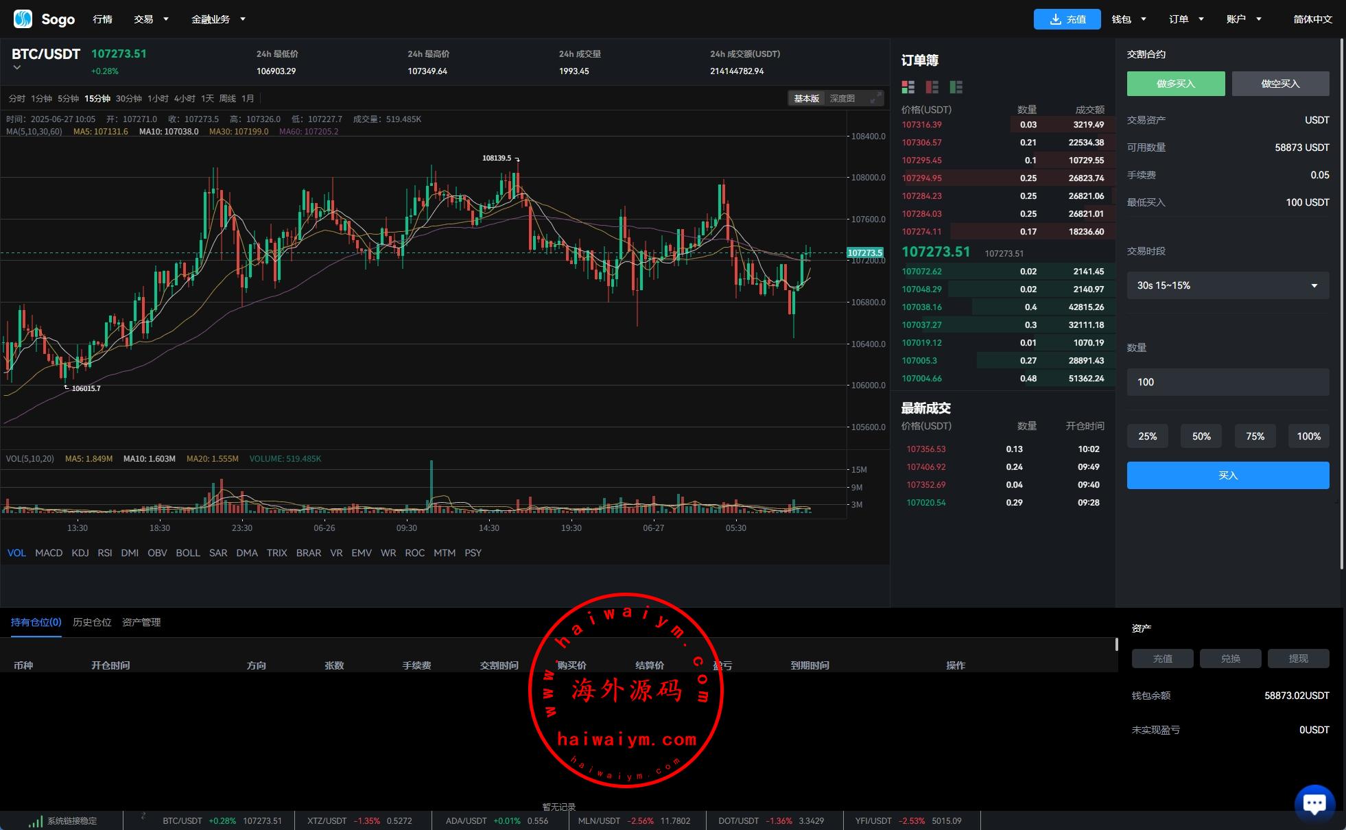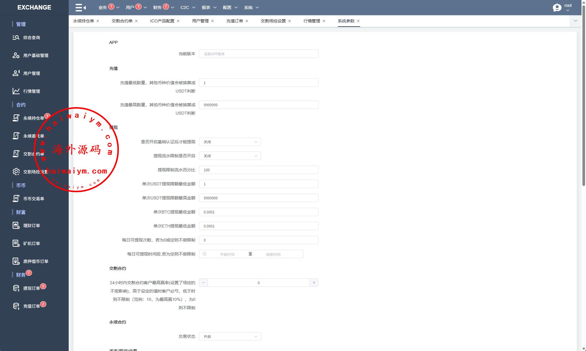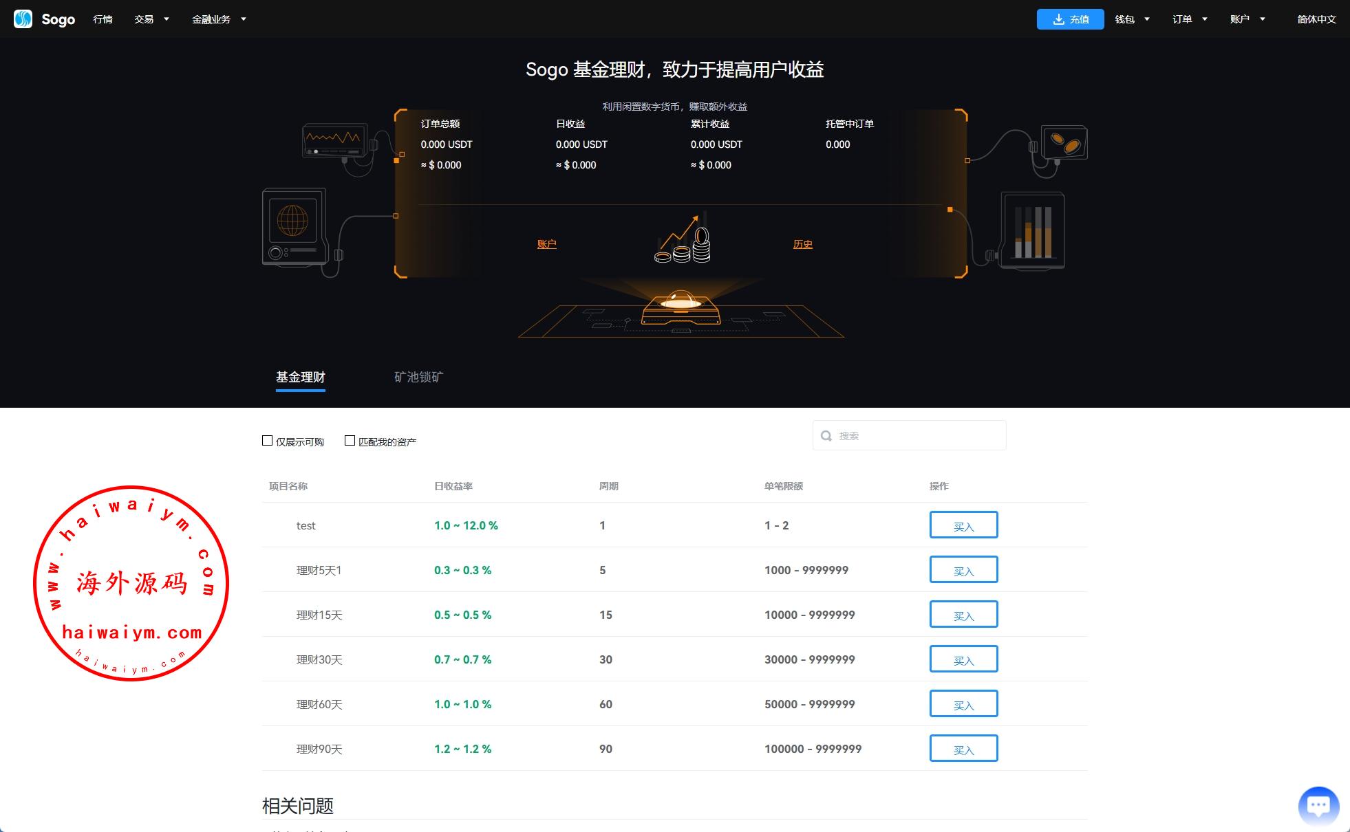海外交易所系统/永续合约交割合约/K线控制/质押理财