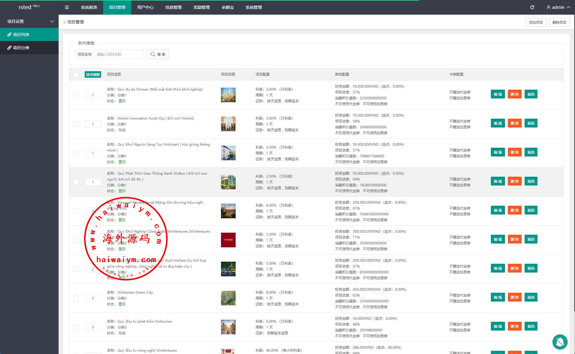 系统前端主越南只有越南语跟简体语言,系统产品后台可修改不限项目类型