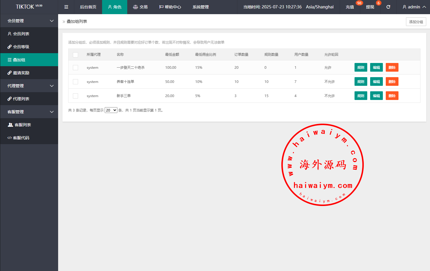 系统功能:信用分、打针、做单叠加组、利息宝等功能