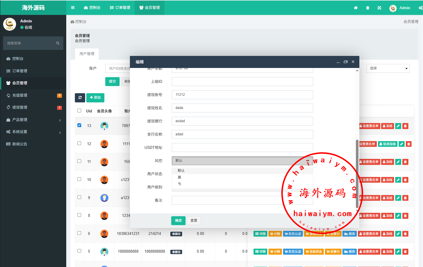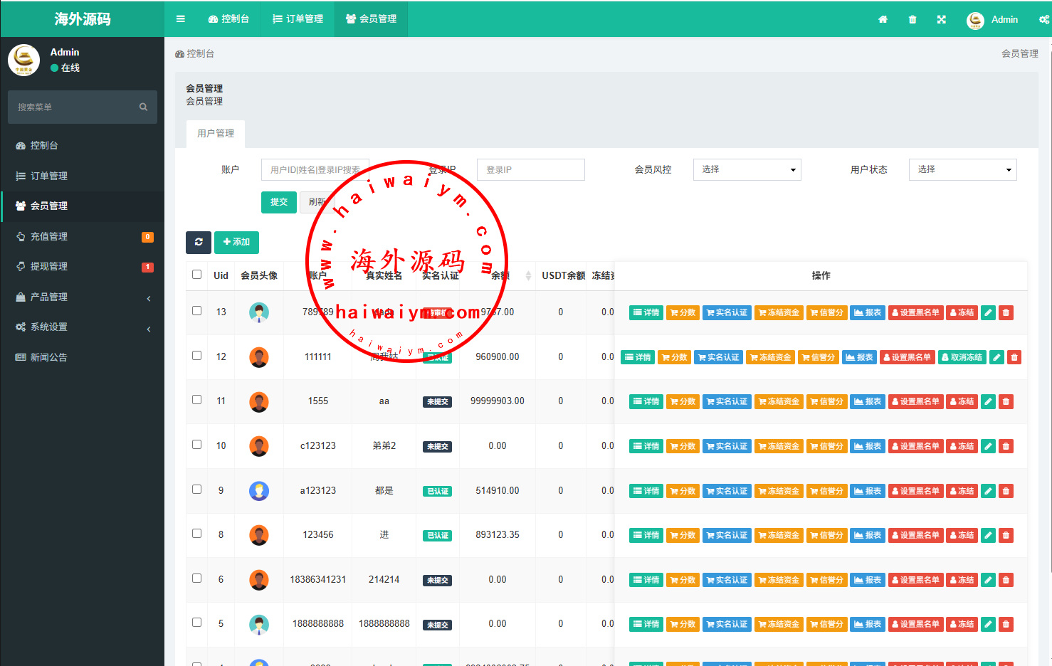 系统产品可二开其他产品,支持实名认证、信用分、单控等功能