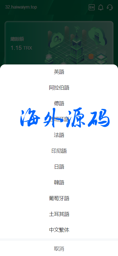 此套是多语言的trx投资源码,前端是vue源码,多种语言