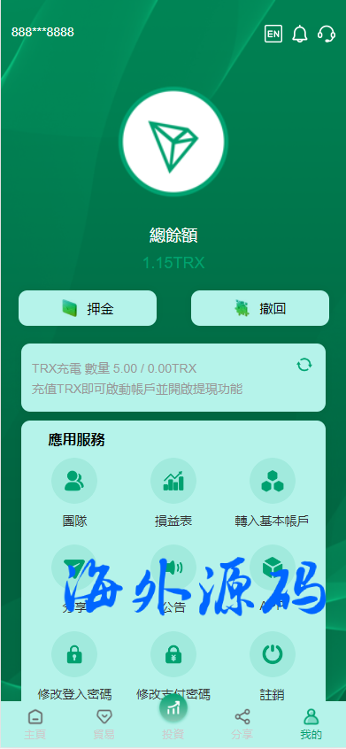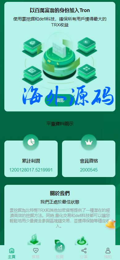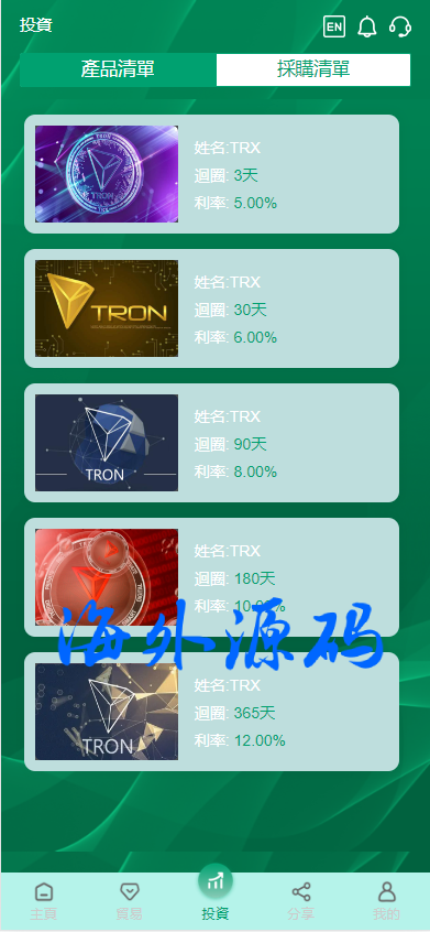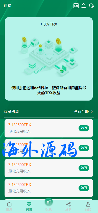 海外TRX投资理财源码/多语言区块链TRX挖矿/前端vue源码