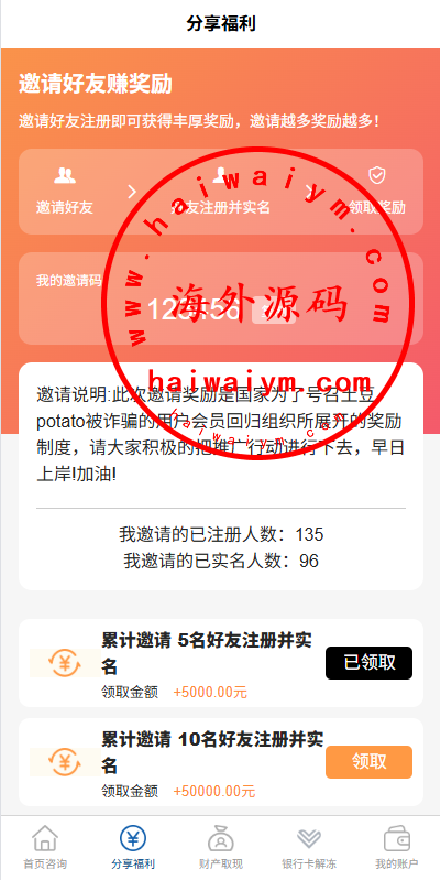 邀请分销系统/注册返利/营销裂变源码/助力拉新