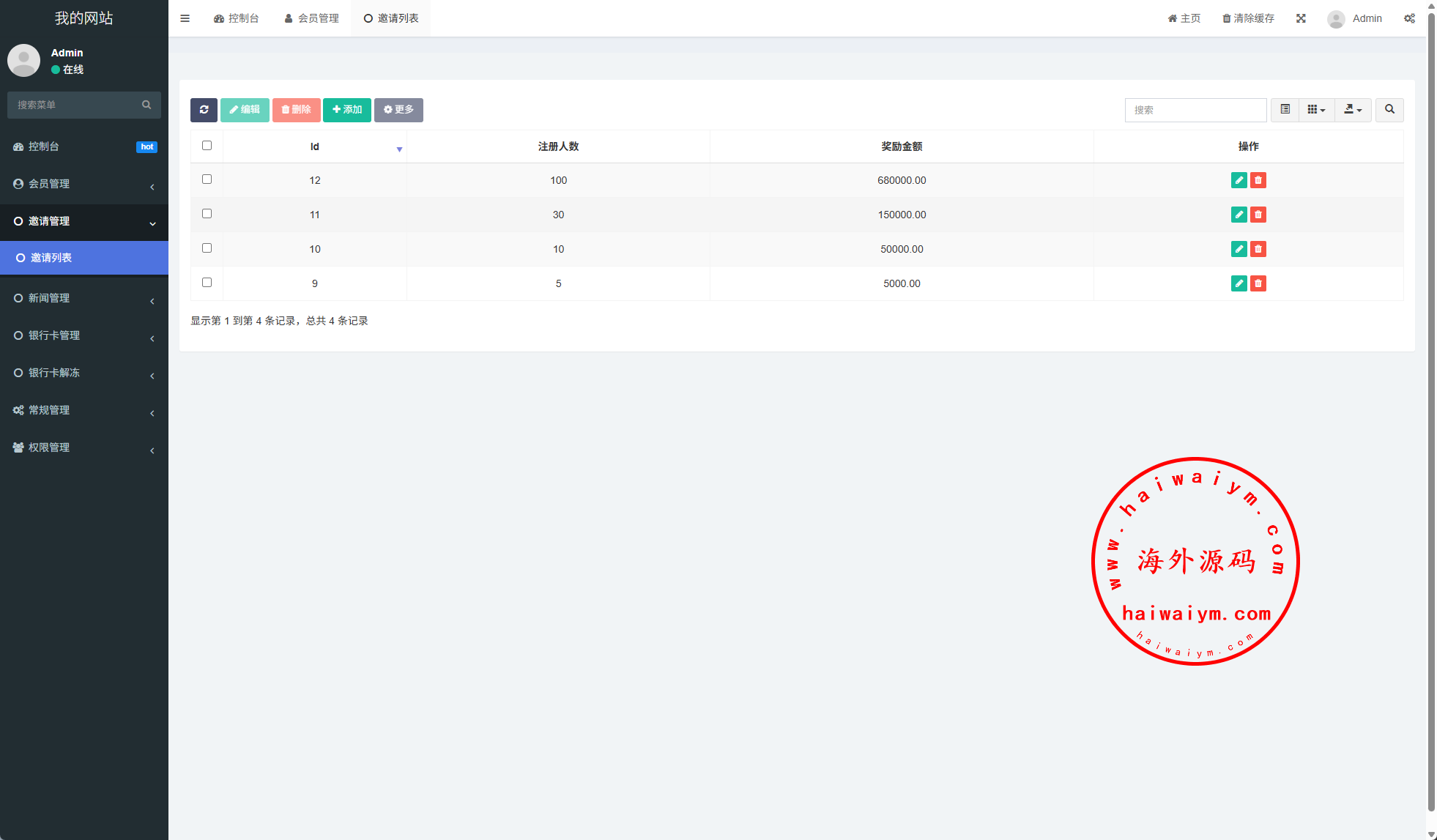 ✅ 后台管理:查看邀请详情、导出数据、配置奖励参数