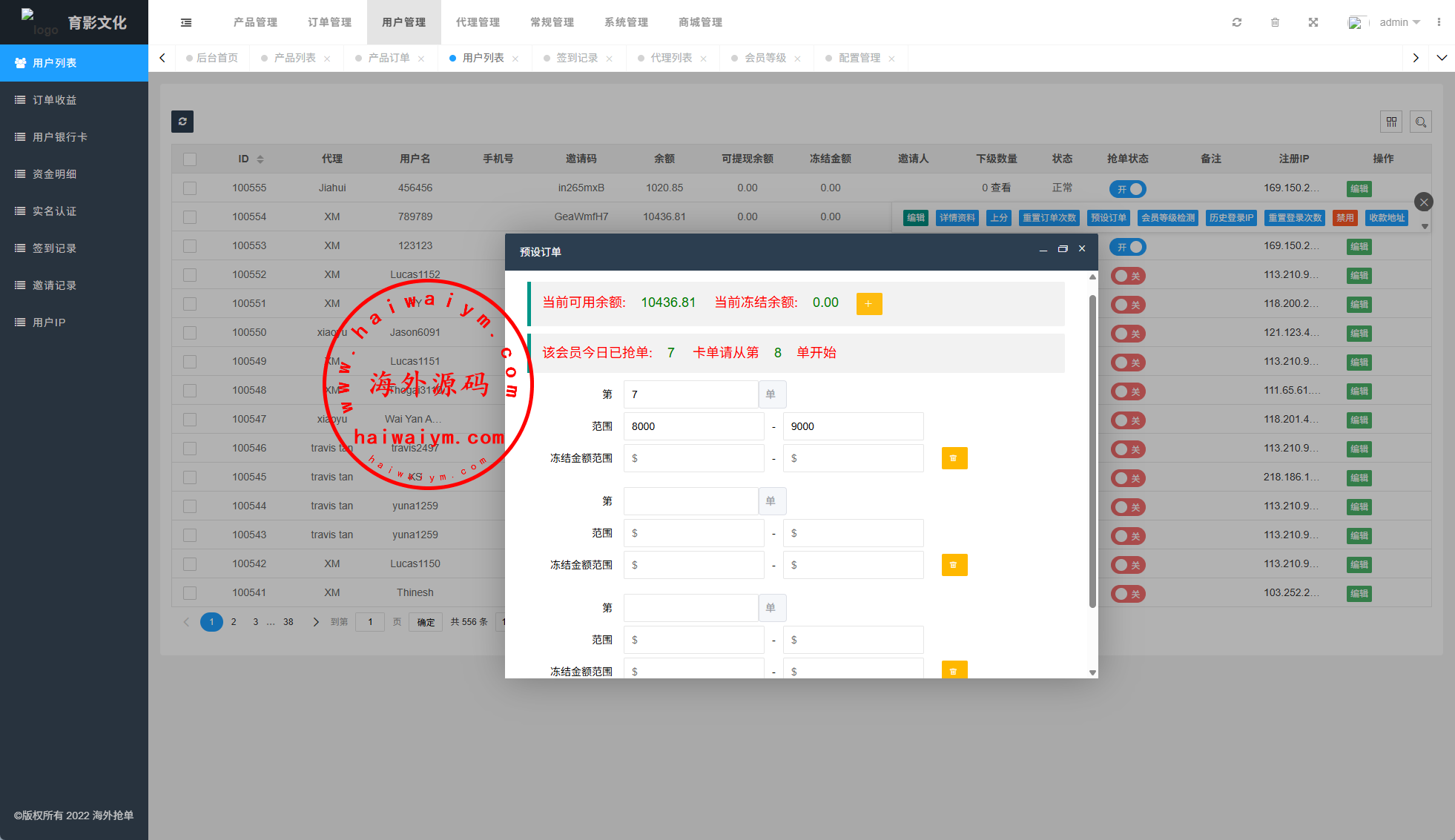 海外商城抢单刷单系统/预设订单/重置订单/签到