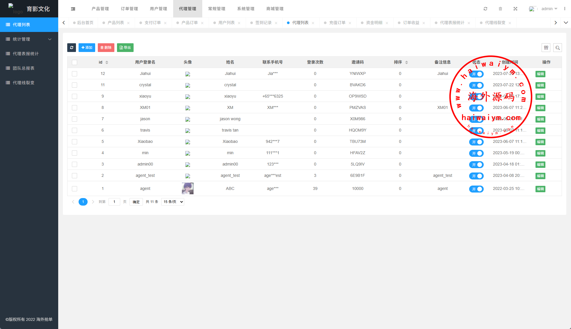 系统功能:抢单开关、预设订单、重置订单、签到、代理等功能