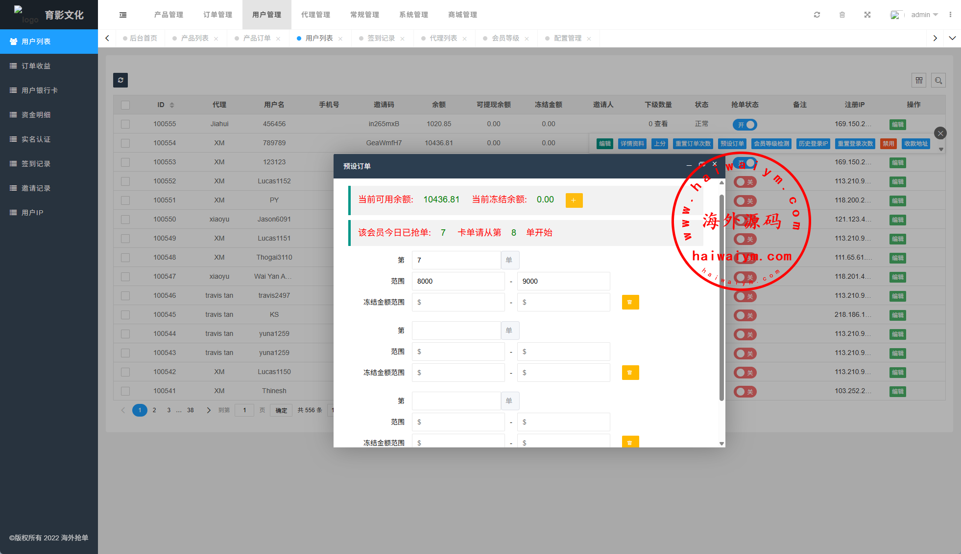 多语言抢单刷单系统/预设订单/重置订单/签到