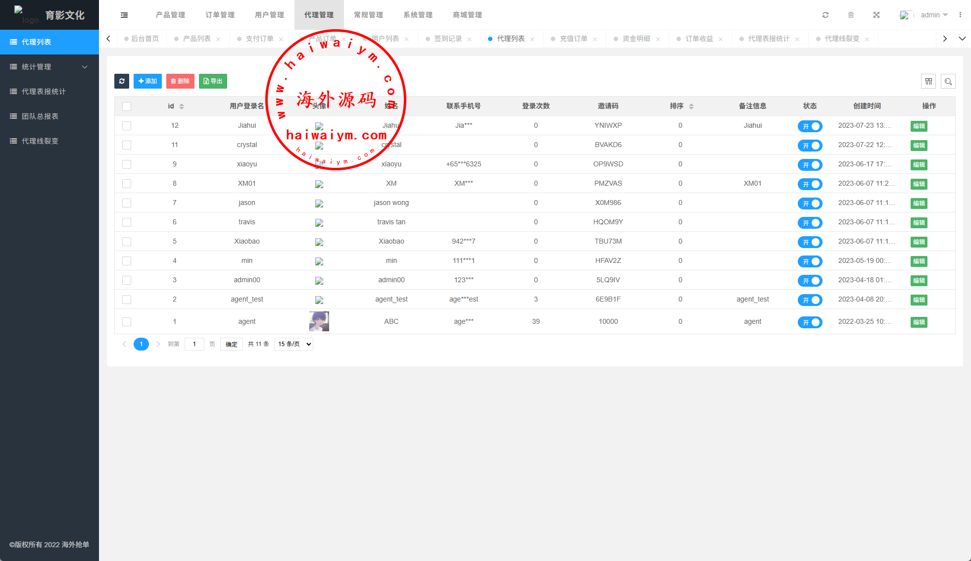 系统功能:抢单开关、预设订单、重置订单、签到、代理等功能