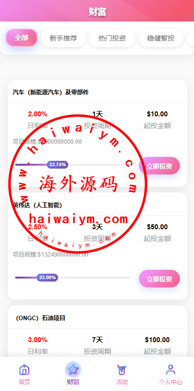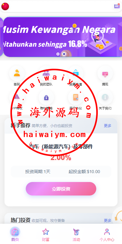多语言投资理财系统/新能源投资返利/海外投资众筹系统