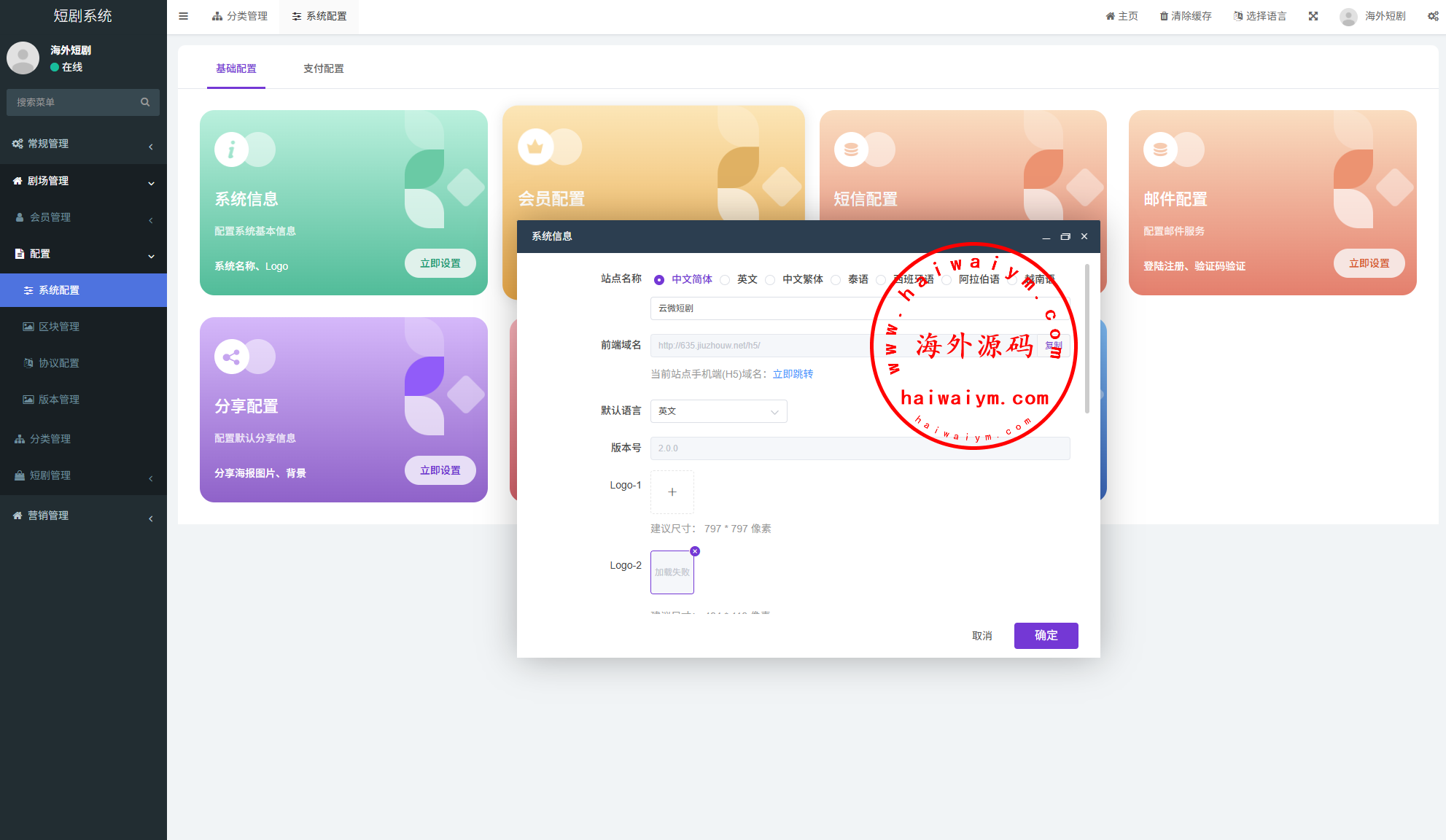 海外短剧系统/多语言短剧/收费短剧剧集/saas版源码