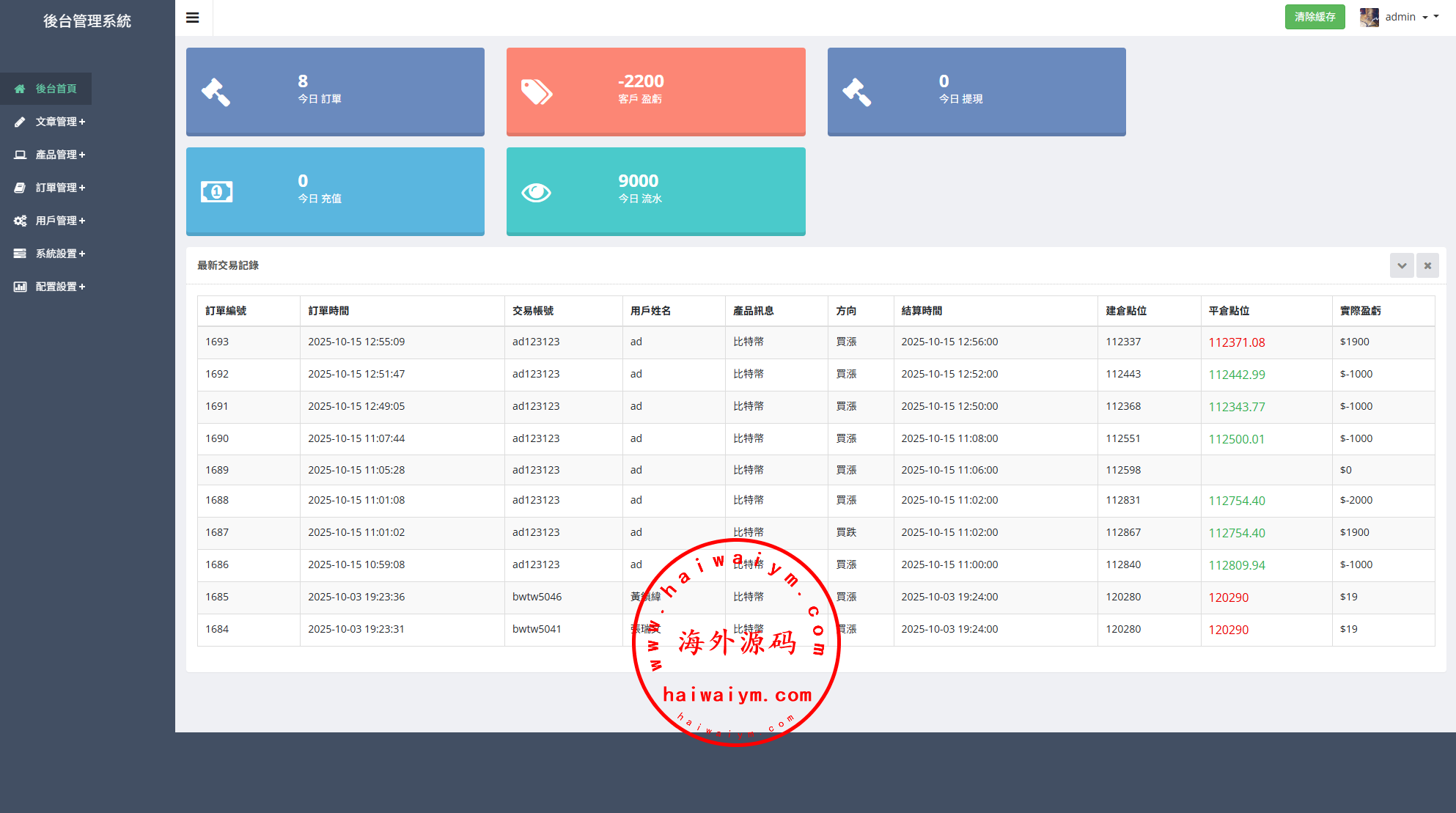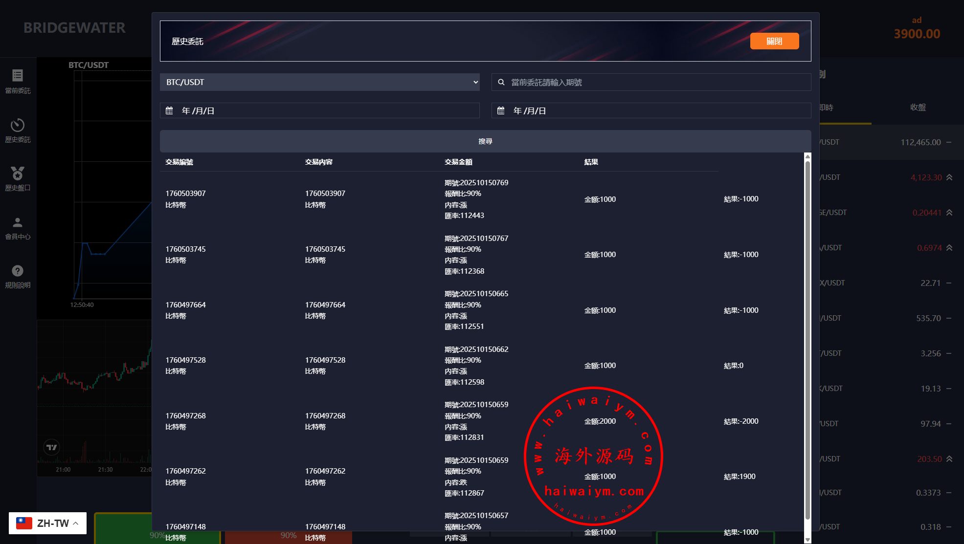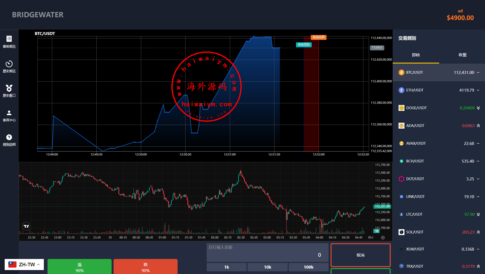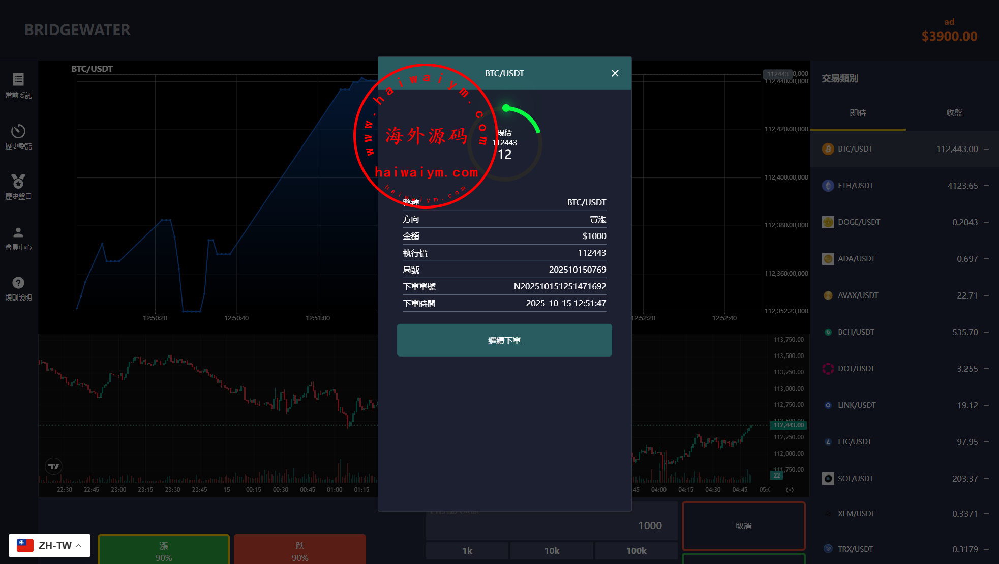 多语言虚拟币交易系统/秒合约交易/伪交易所/时间盘