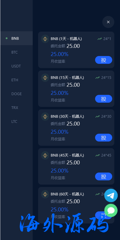 全新开发的区块链投资源码,多种区块链币种投资模式