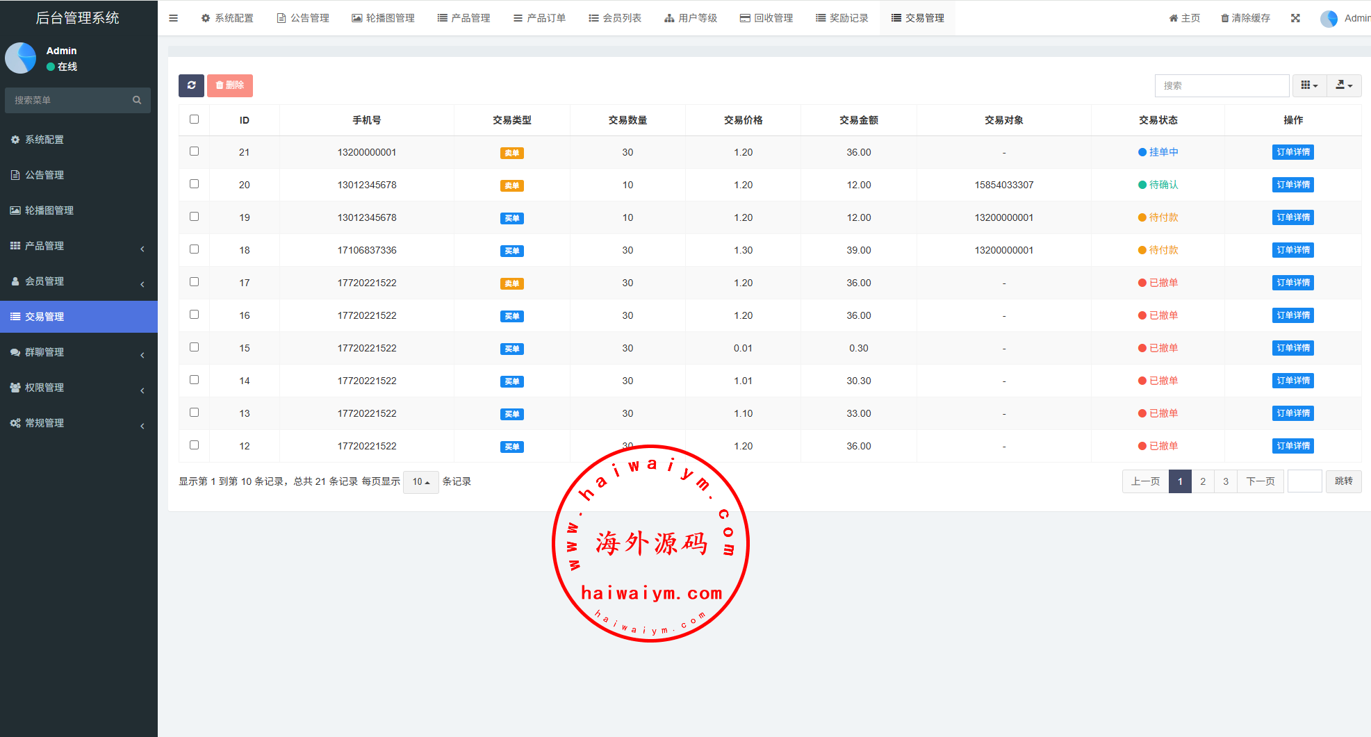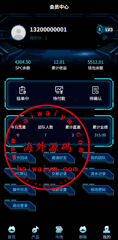 虚拟币矿机投资系统/系统币C2C交易/多级分销/群聊系统