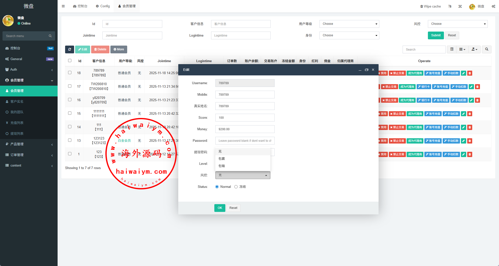 系统支持实名认证,银行卡,提现usdt提现等功能