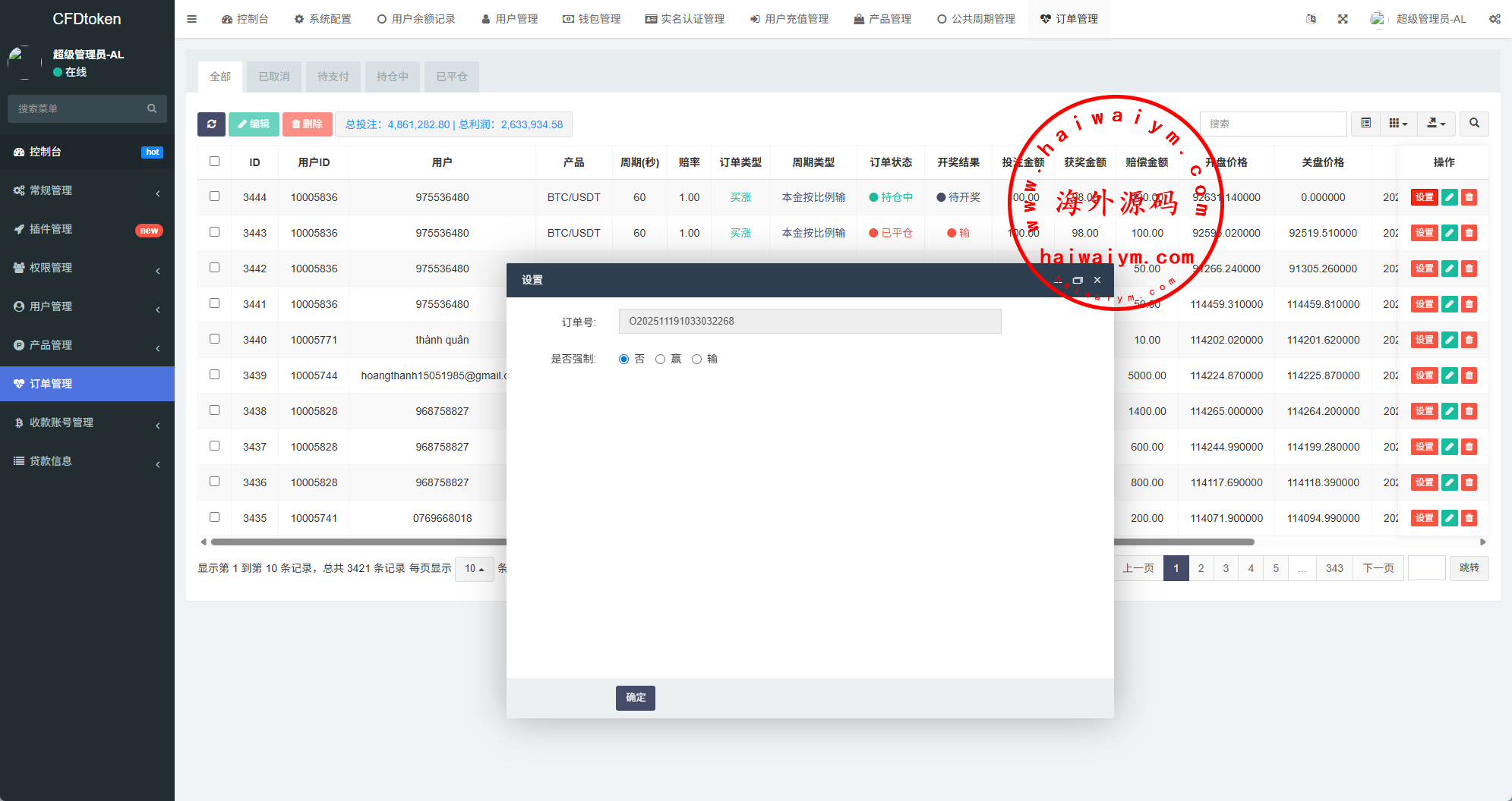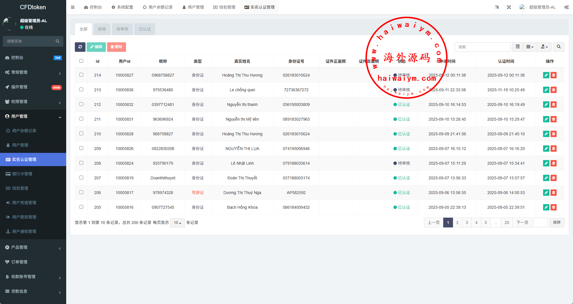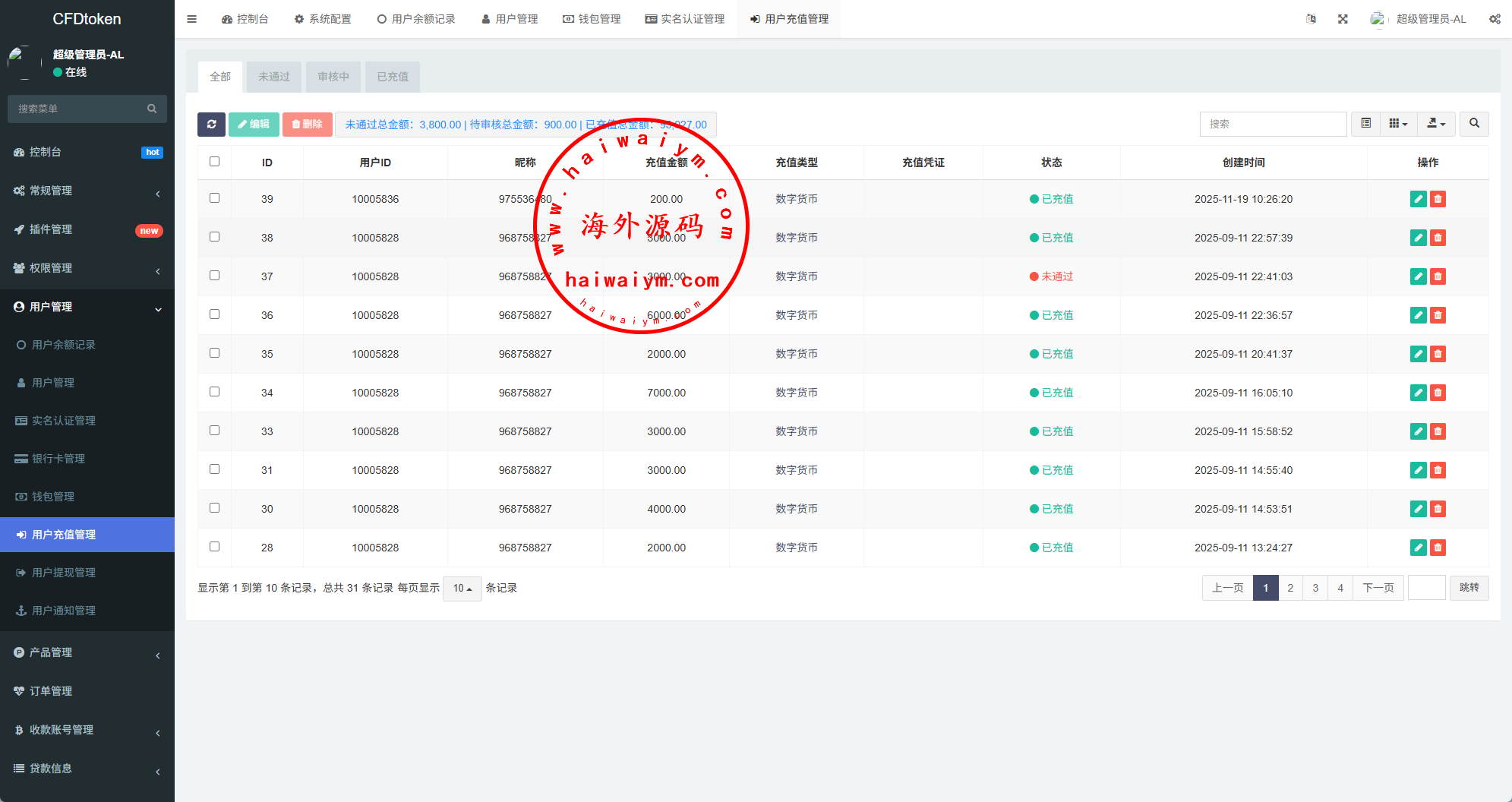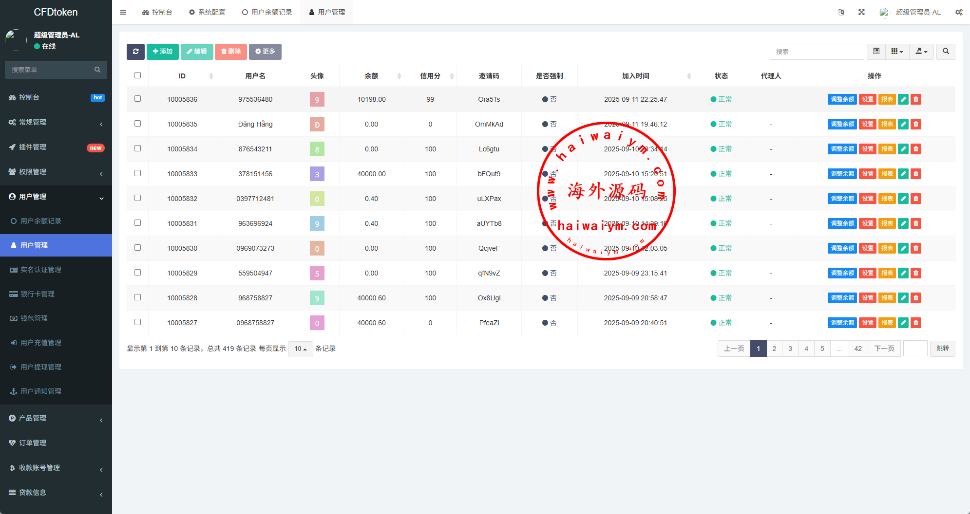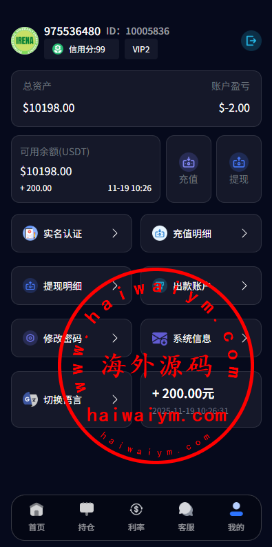 系统功能:信用分,实名认证,银行卡usdt充值提现,用户单控,订单控制等功能