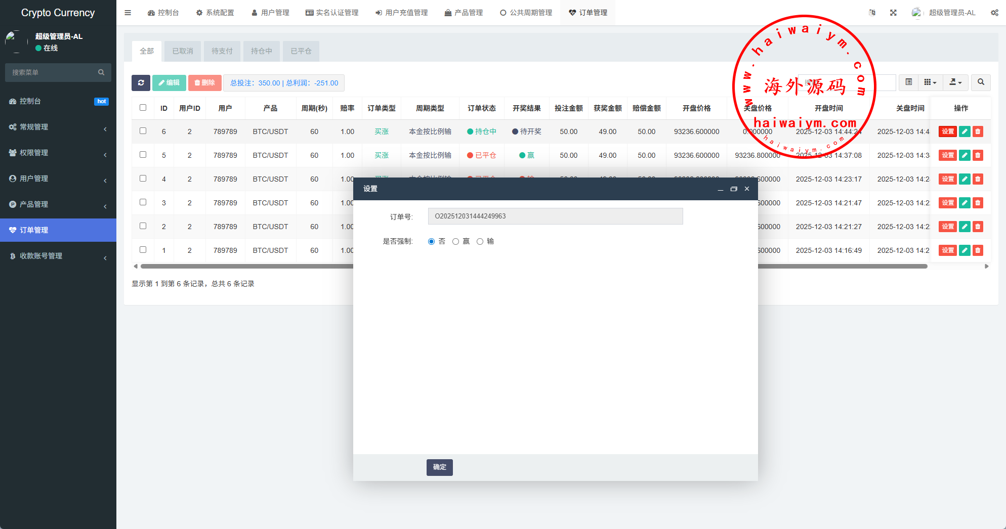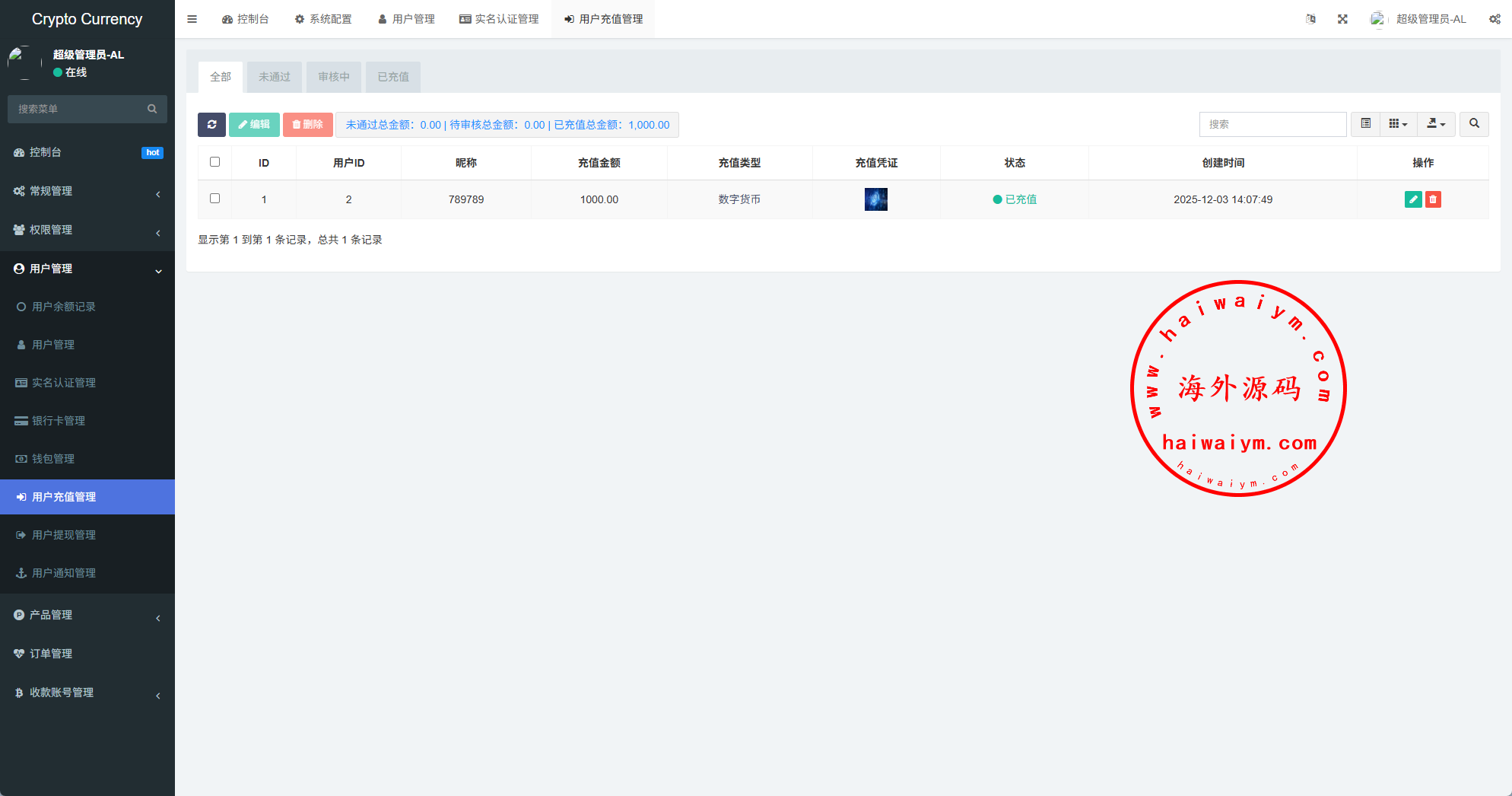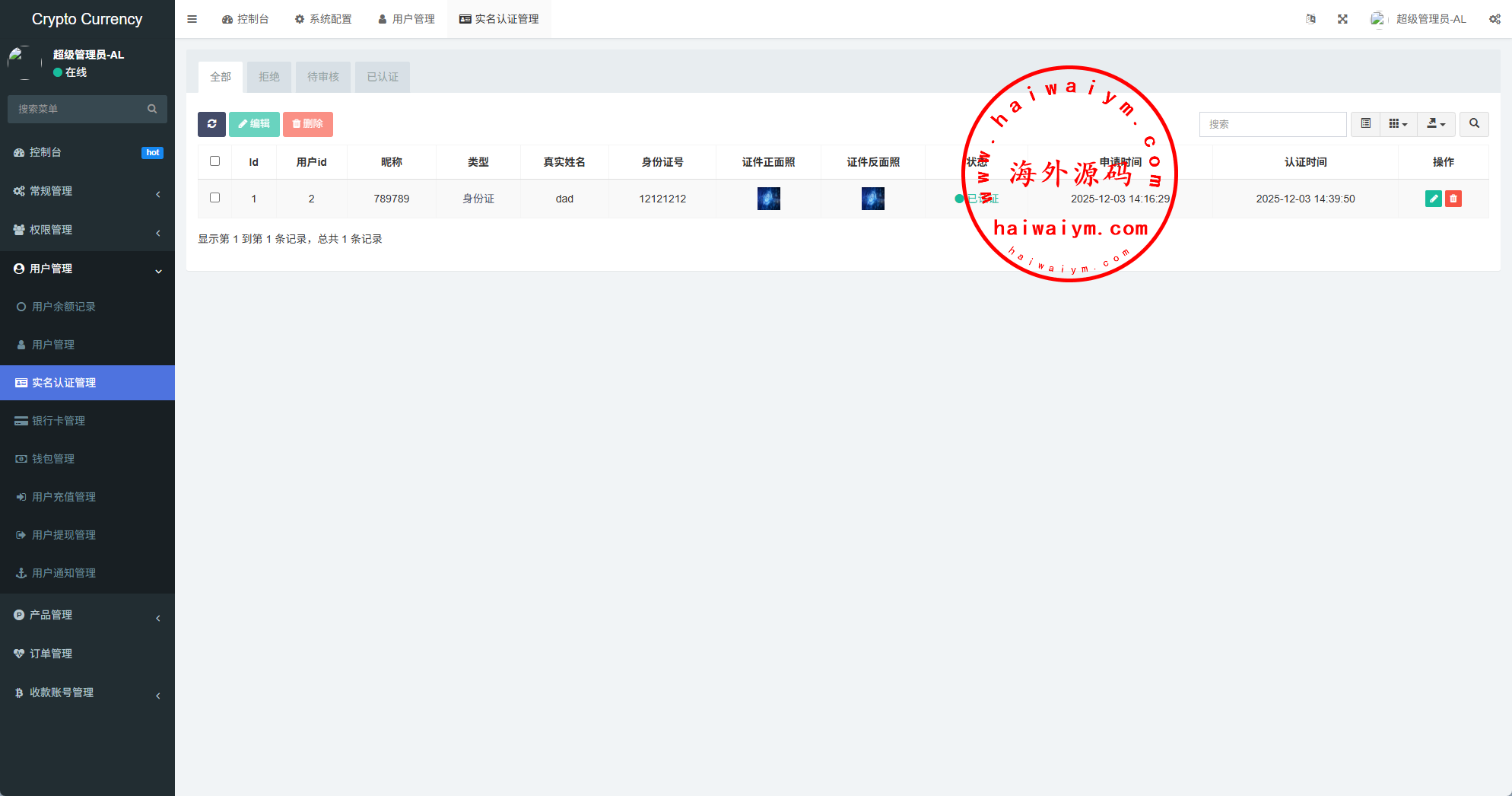 系统功能:信用分,实名认证,银行卡usdt充值提现,用户单控,订单控制等功能
