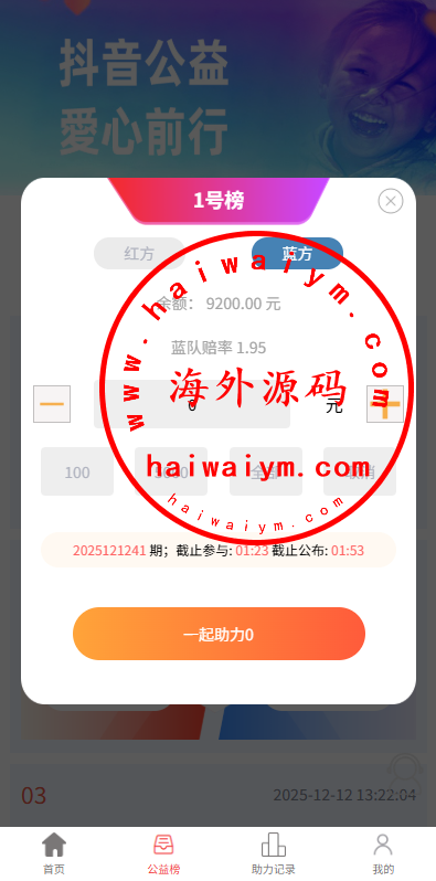 多语言tiktok助力竞猜系统/抖音热点下注竞猜/公益捐赠