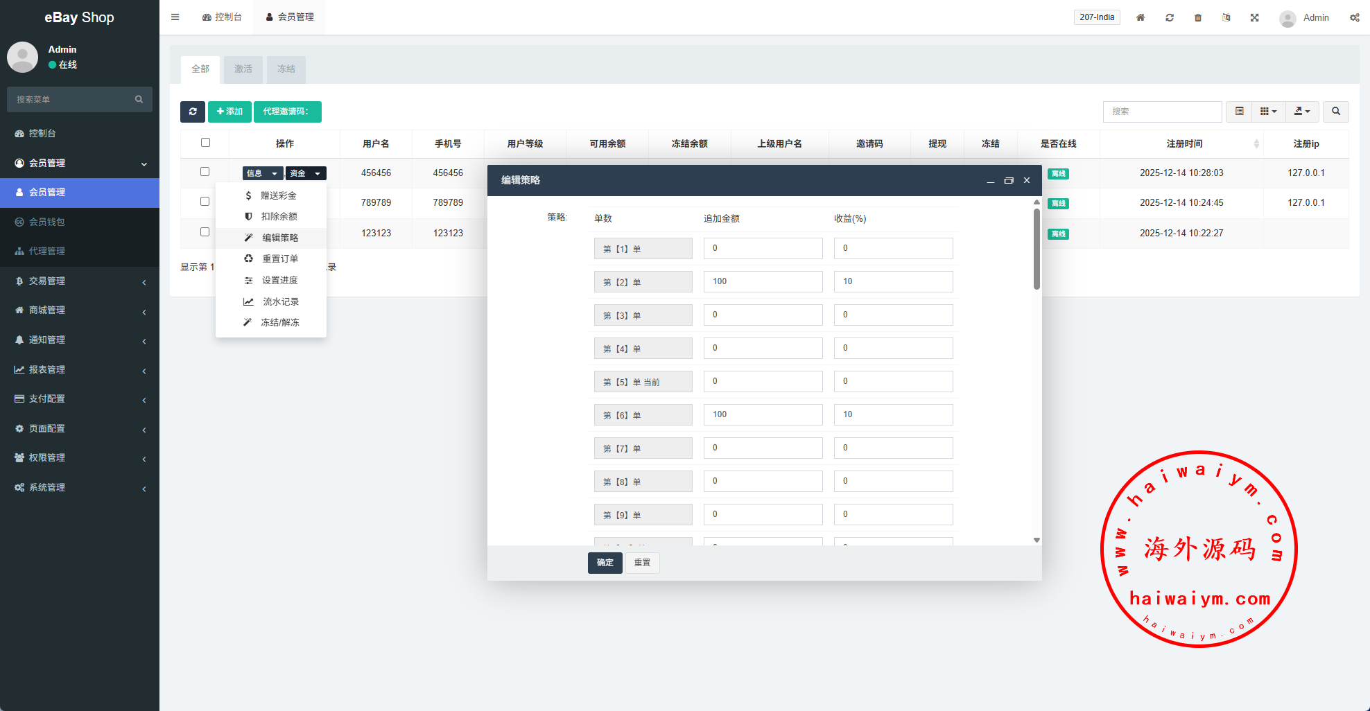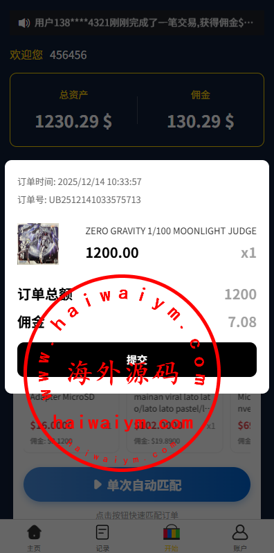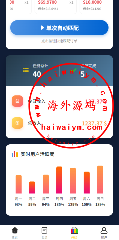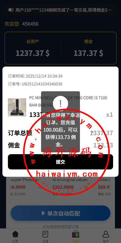 自由设置每一个订单的金额及佣金比例,亦可直接设置1-40单;若设置的订单金额超过用户余额,则显示:请充值XXX元,以获得佣金XXX元。