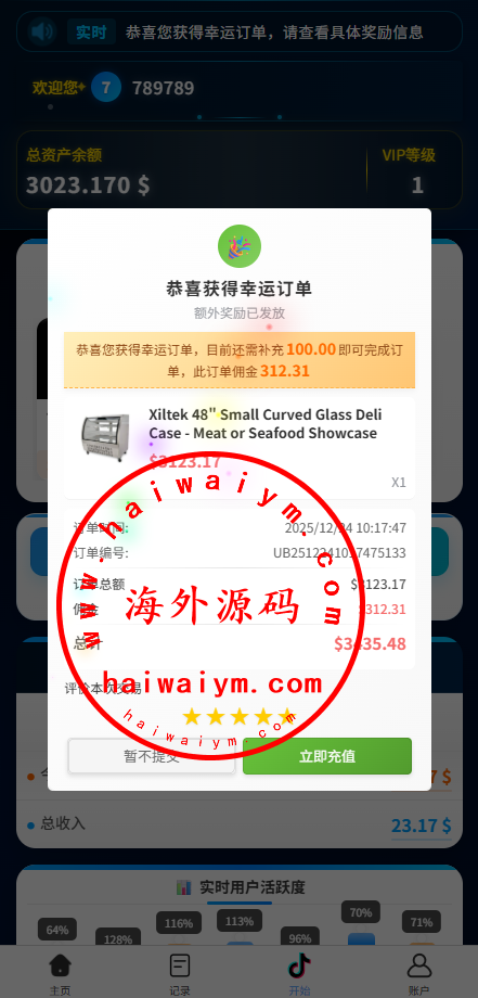 新版tiktok抢单刷单系统,前端VUE开发后端PHP全开源带教程