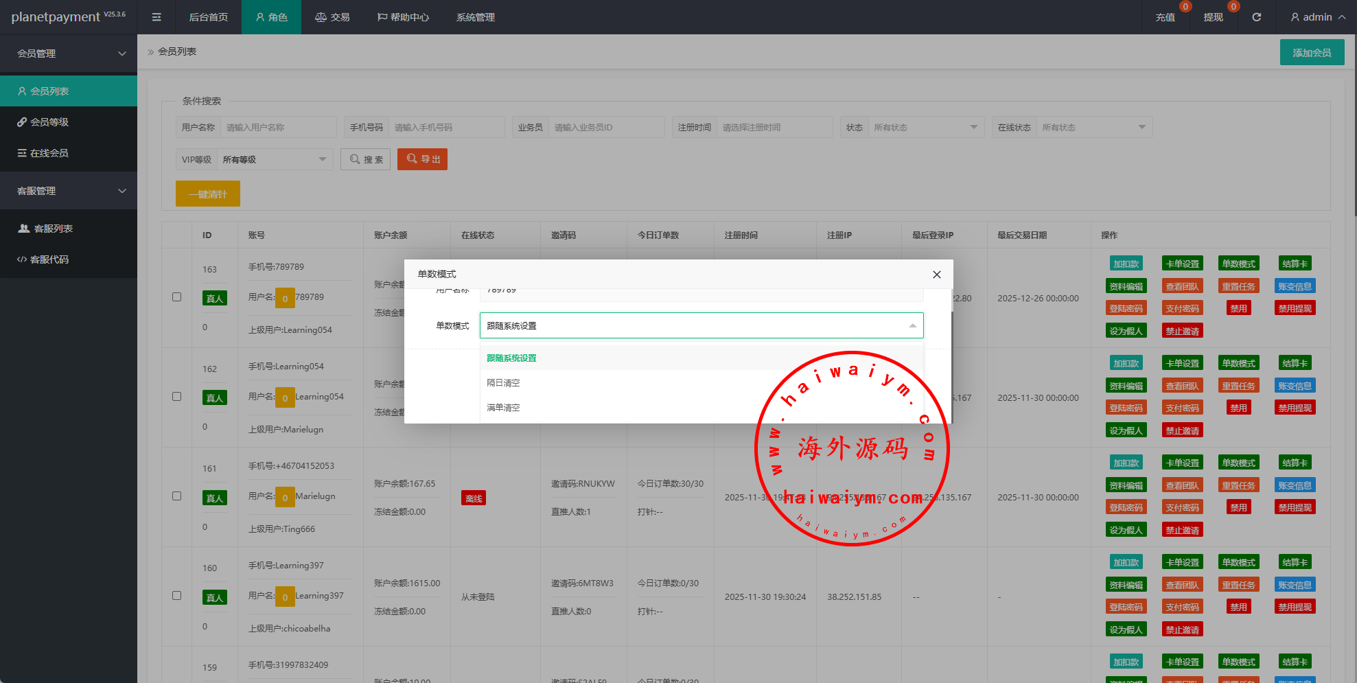 系统功能:自定义卡单连单,信誉分,重置订单等功能