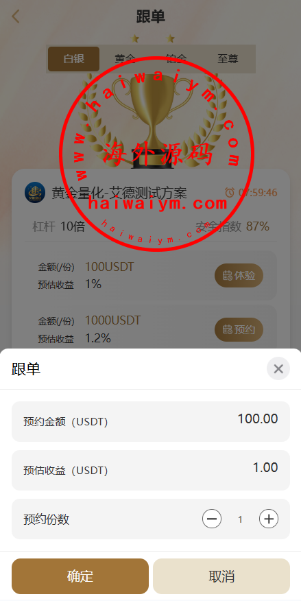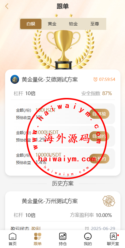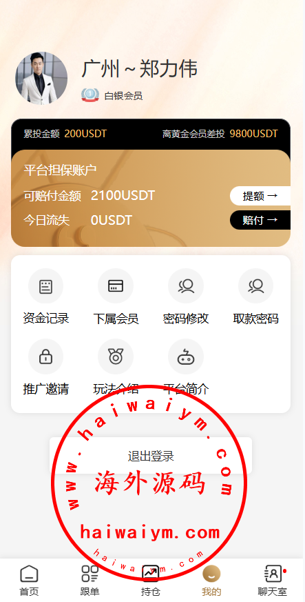 黄金投资跟单后台手动发布订单前端用户购买前端支付对接U盾,自带聊天室可设置管理员跟发红包
